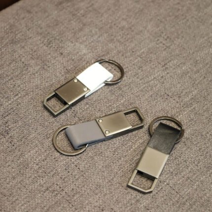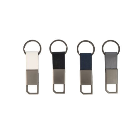 The key holder is made of black metal, and it also features a black belt that strengthens the ring. Item Size: 55 x 15 mm Branding Options Laser Marking