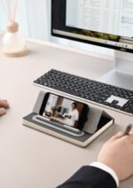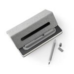 The ultimate A5 notebook designed for versatility and convenience. This innovative notebook features a unique 2-in-1 writing instrument with a pen on one side and a pencil on the other, making it perfect for all your writing needs. Crafted from recycled PU material, this notebook is both eco-friendly and stylish.The STAND PENOTE includes an elastic closure to keep your notes secure and organized. The cover has a clever fold that transforms into a mobile stand, allowing you to prop up your device for hands-free viewing—ideal for video calls, watching videos, or following recipes while you cook.With dimensions of 20 x 14.1 x 1.5 cm, this compact notebook fits easily into bags or backpacks, making it perfect for students, professionals, or anyone on the go. Packaged in an eco-friendly kraft paper box, the STAND PENOTE is not only practical but also makes a thoughtful gift for corporate events, team outings, or special occasions.