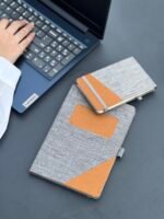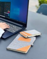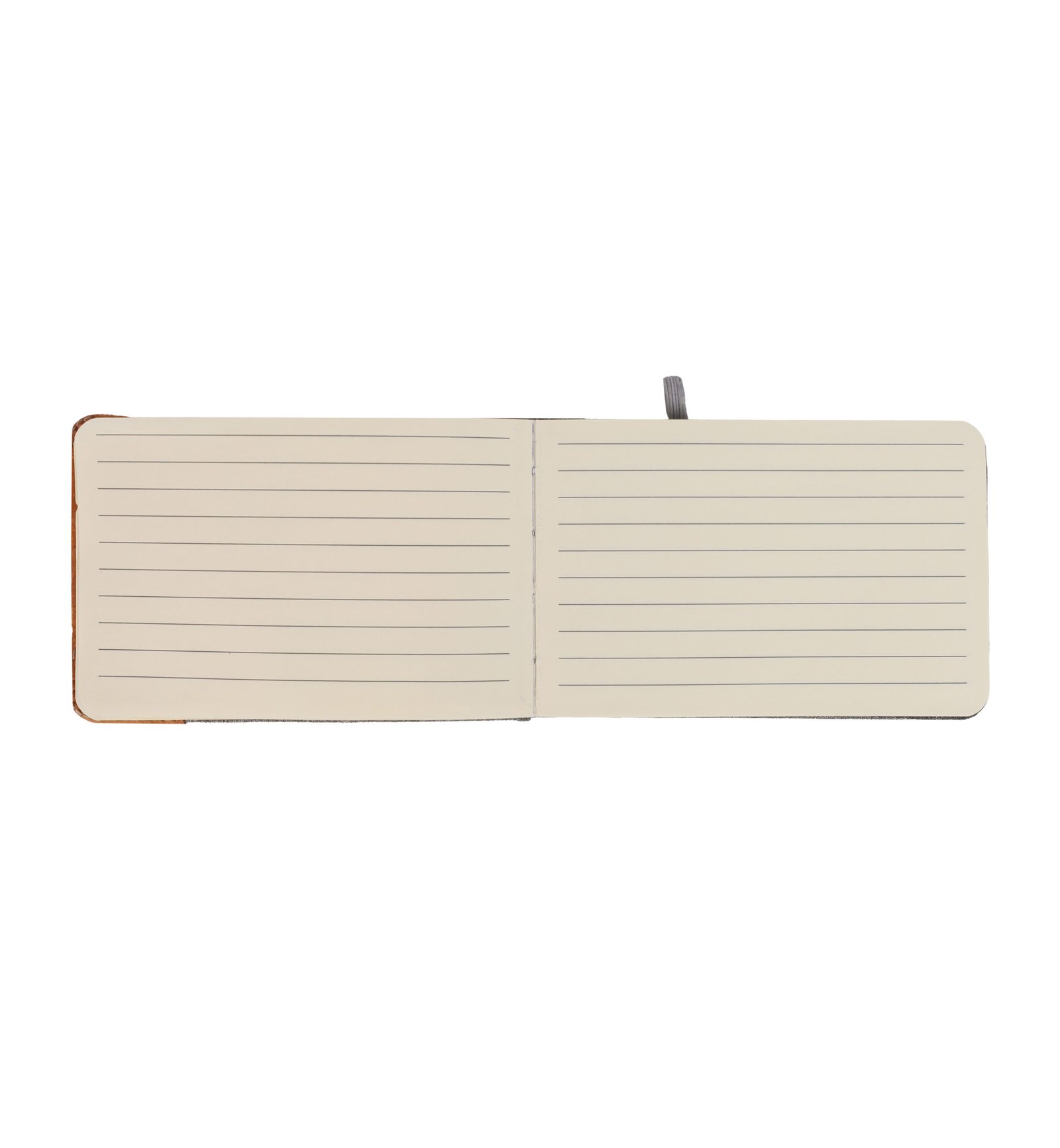 A6 notebook made with recycled PET material with leather detailing. Contains 80 single-lined sheets with 70 GSM quality.