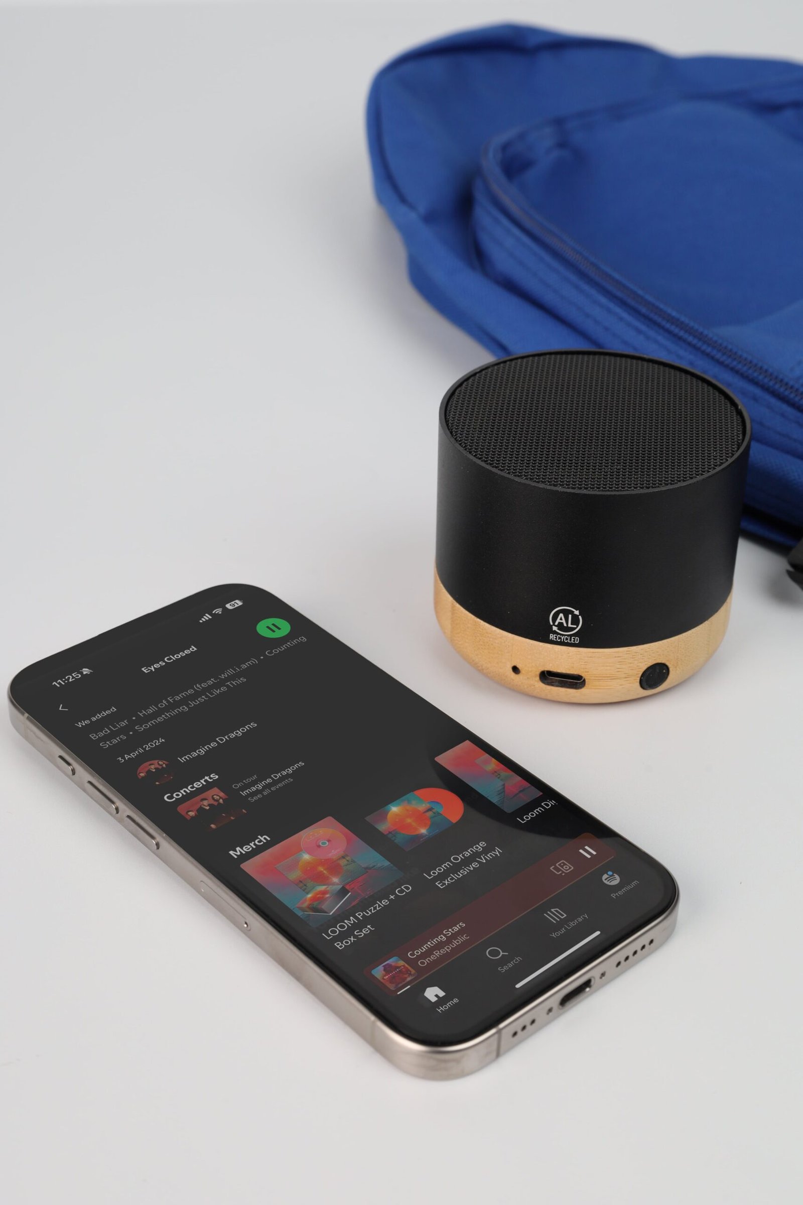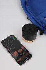 A bluetooth speaker made from aluminium alloy and eco-friendly bamboo with a 2-3 hours playtime & type C port.