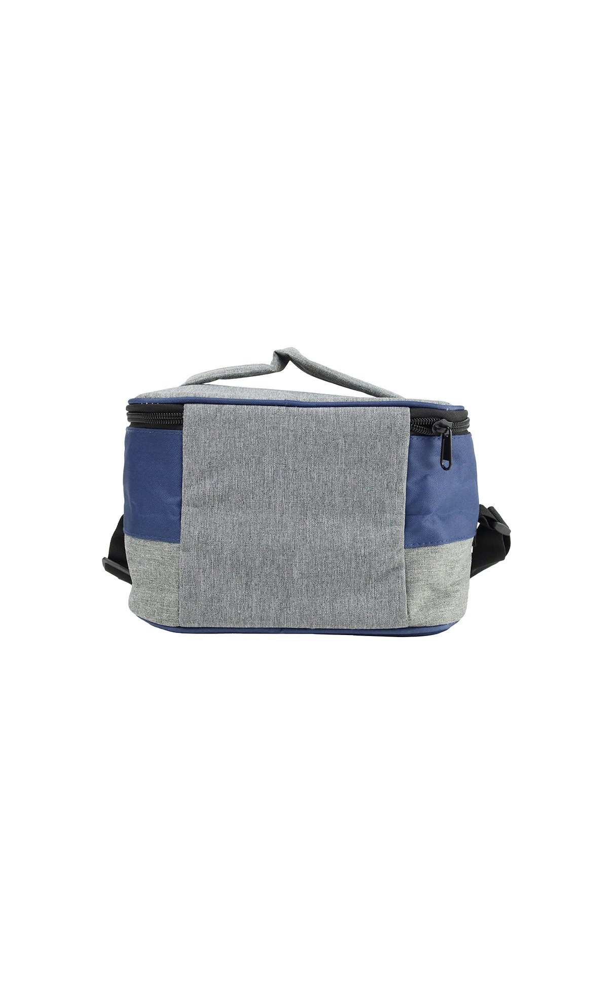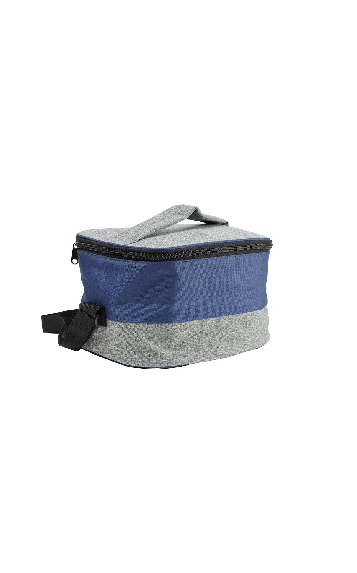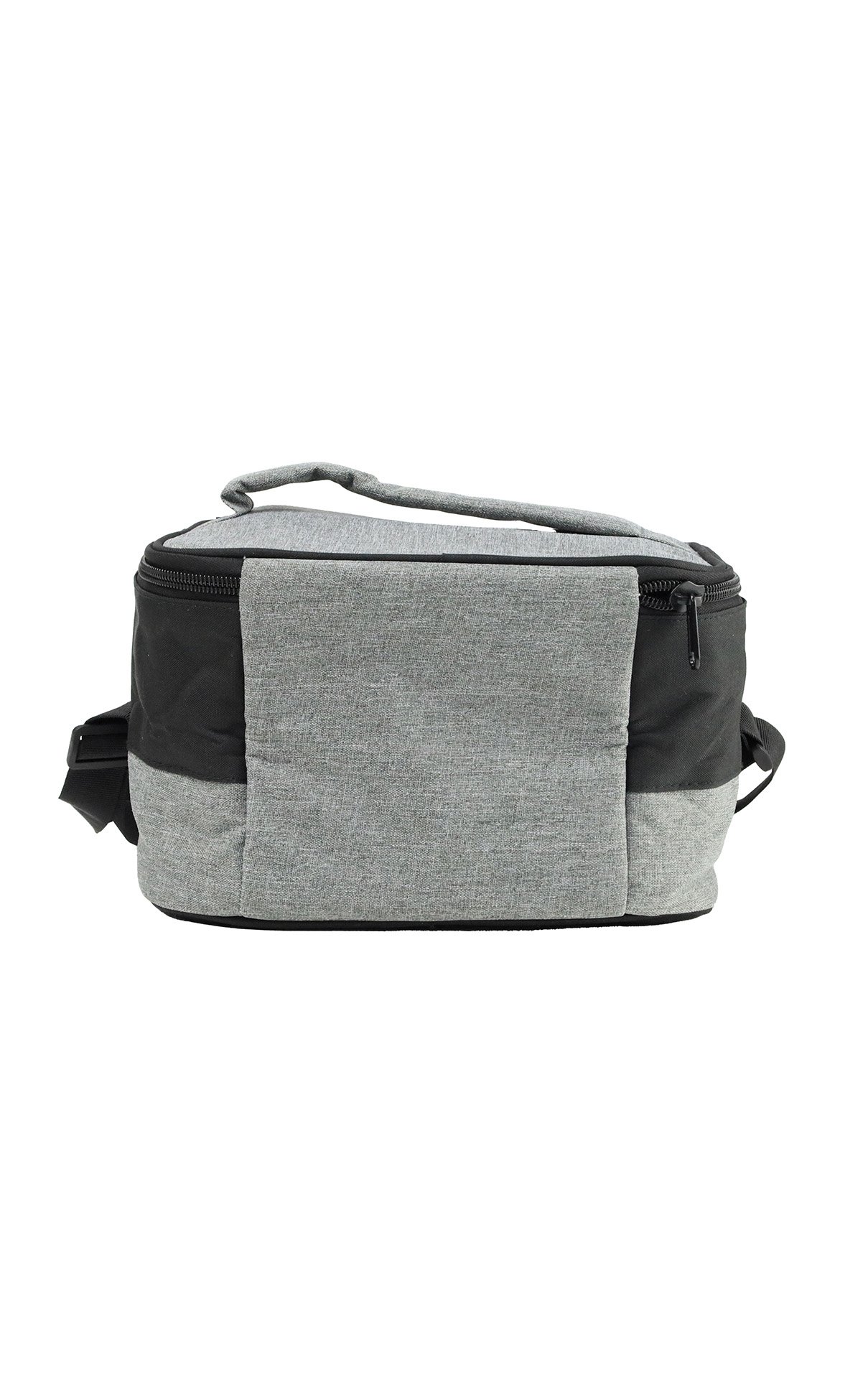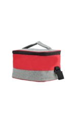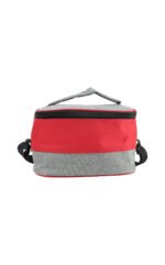Two-tone, spacious lunch bag made from recycled material – 600D RPET that comes with an insulated layer inside and a shoulder strap.