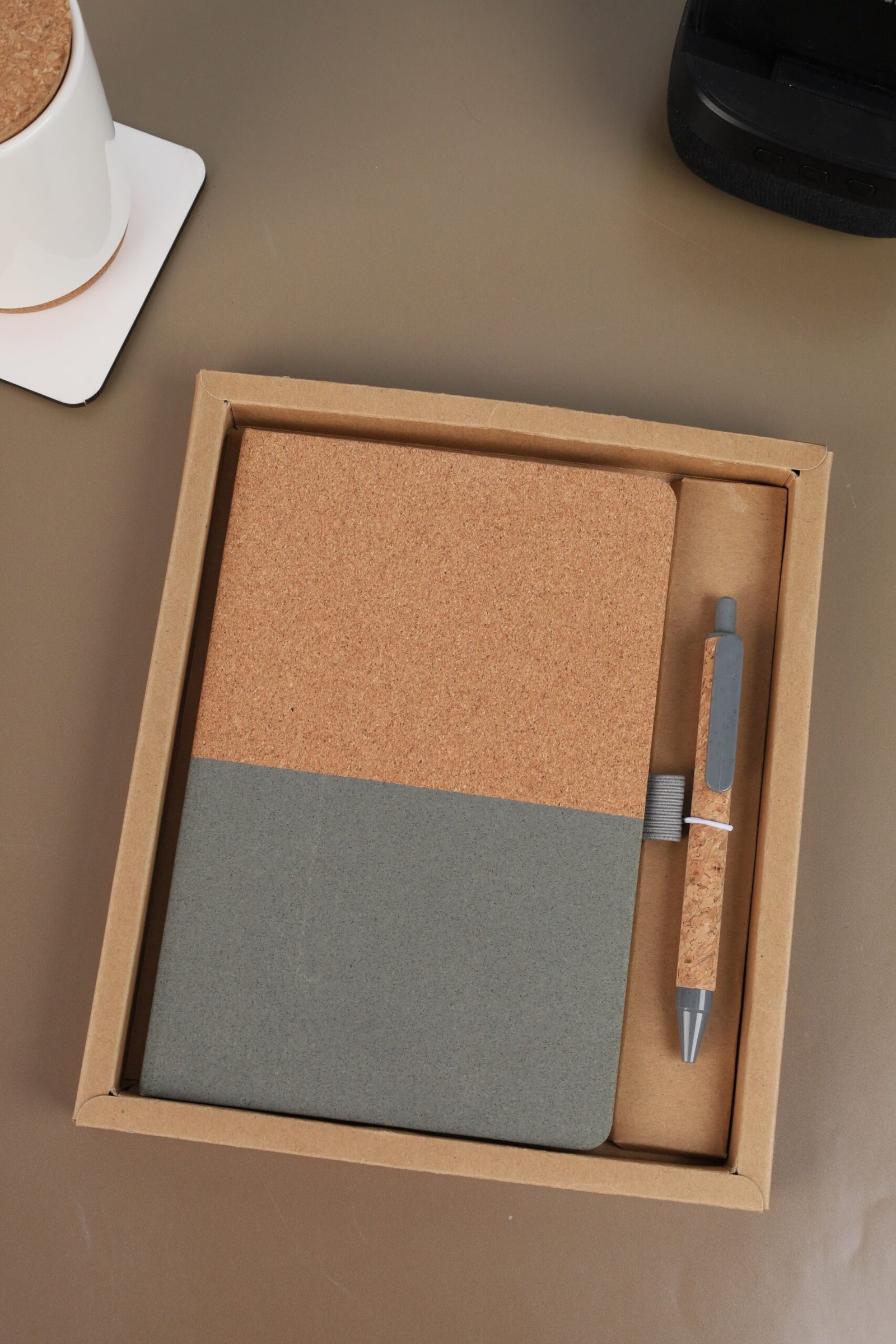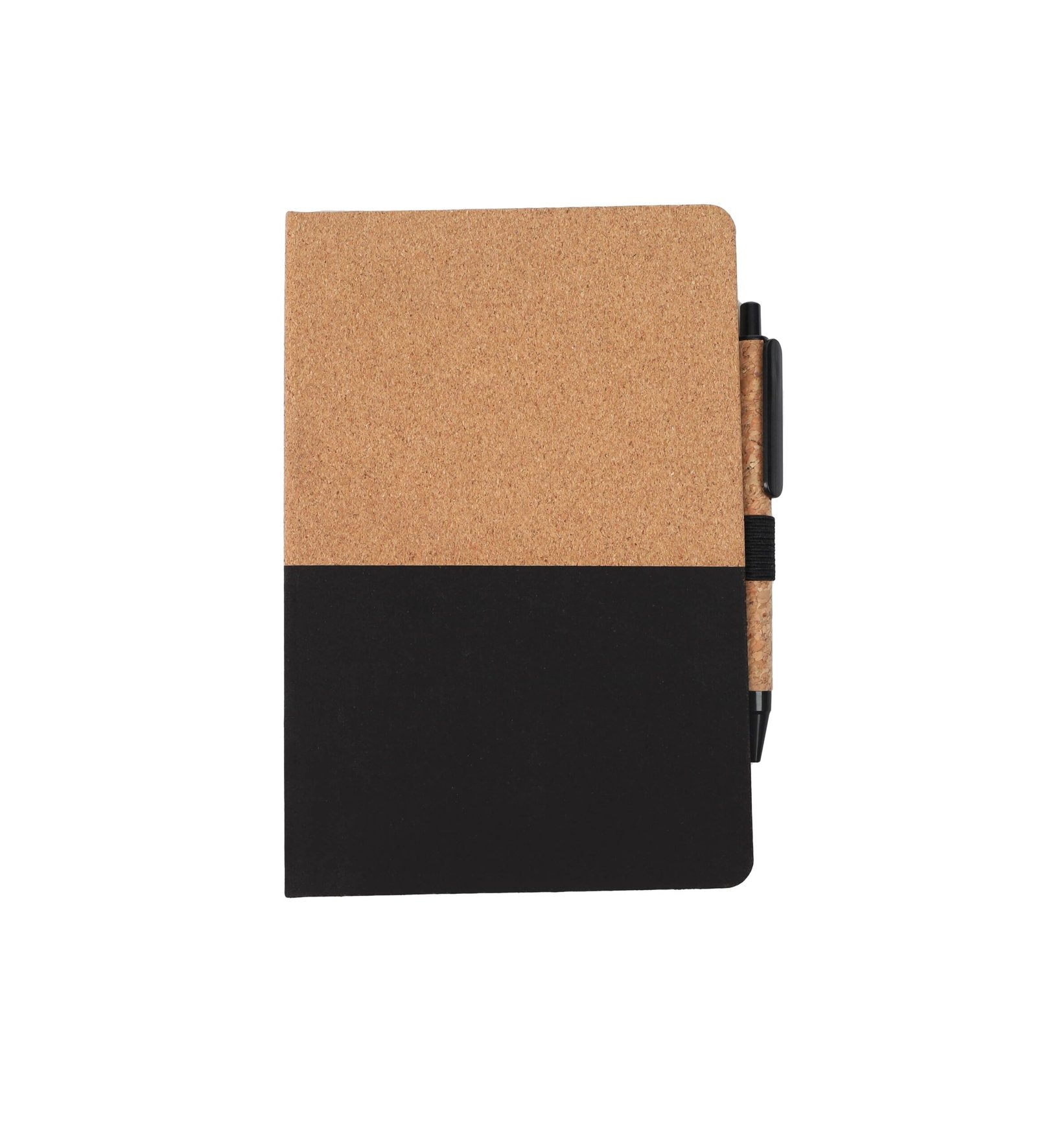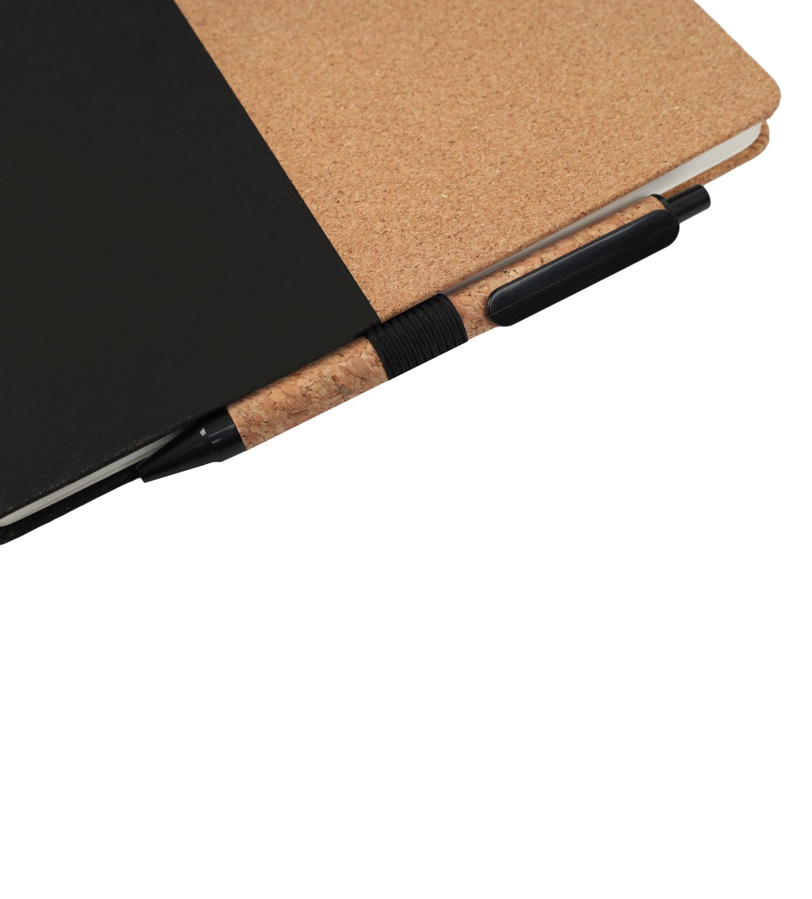 -An A5 cork notebook with 80 70g single-lined sheets, elastic closure and pen loop.