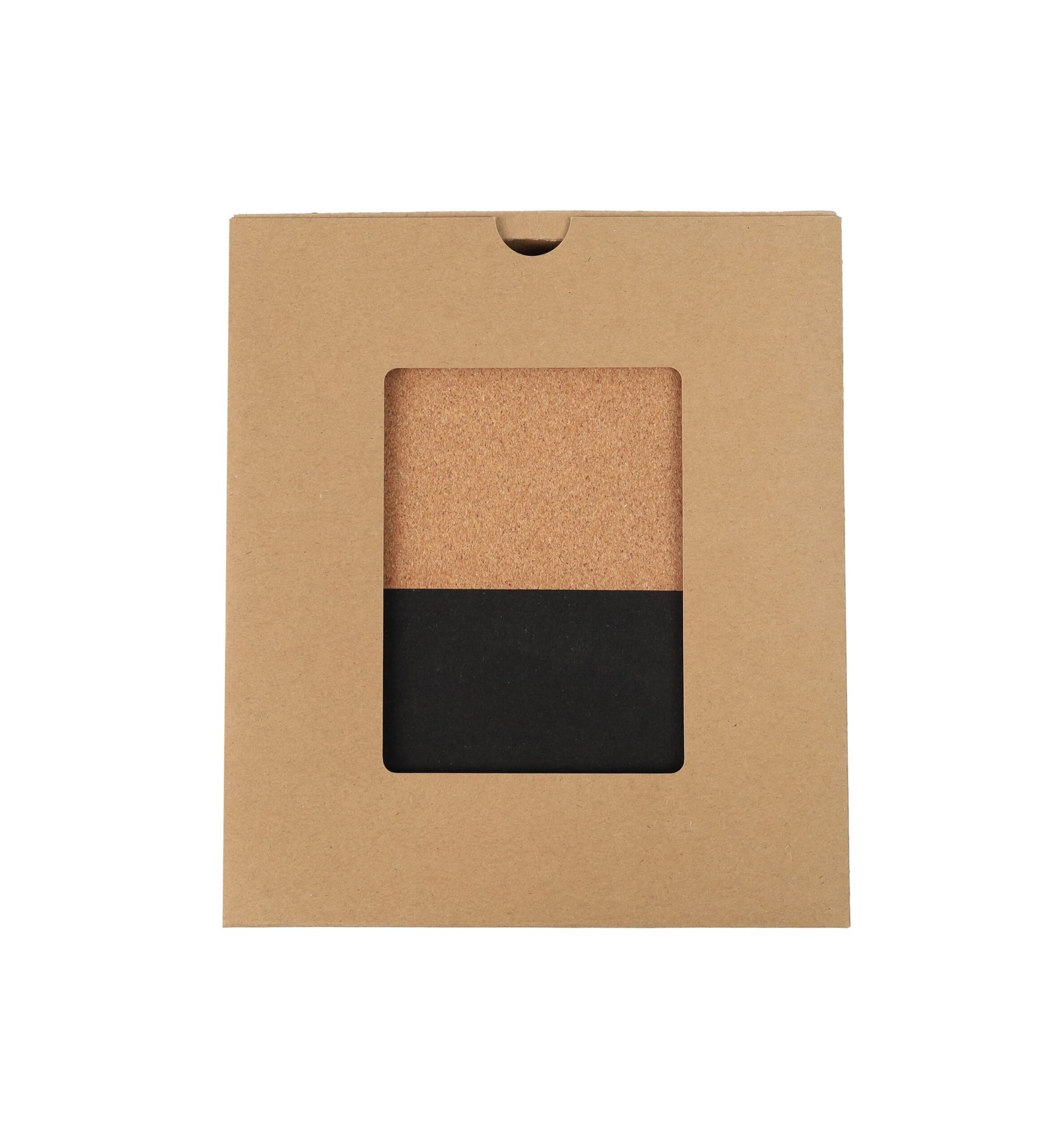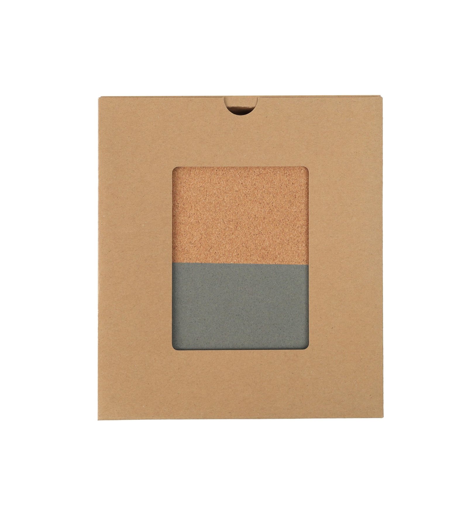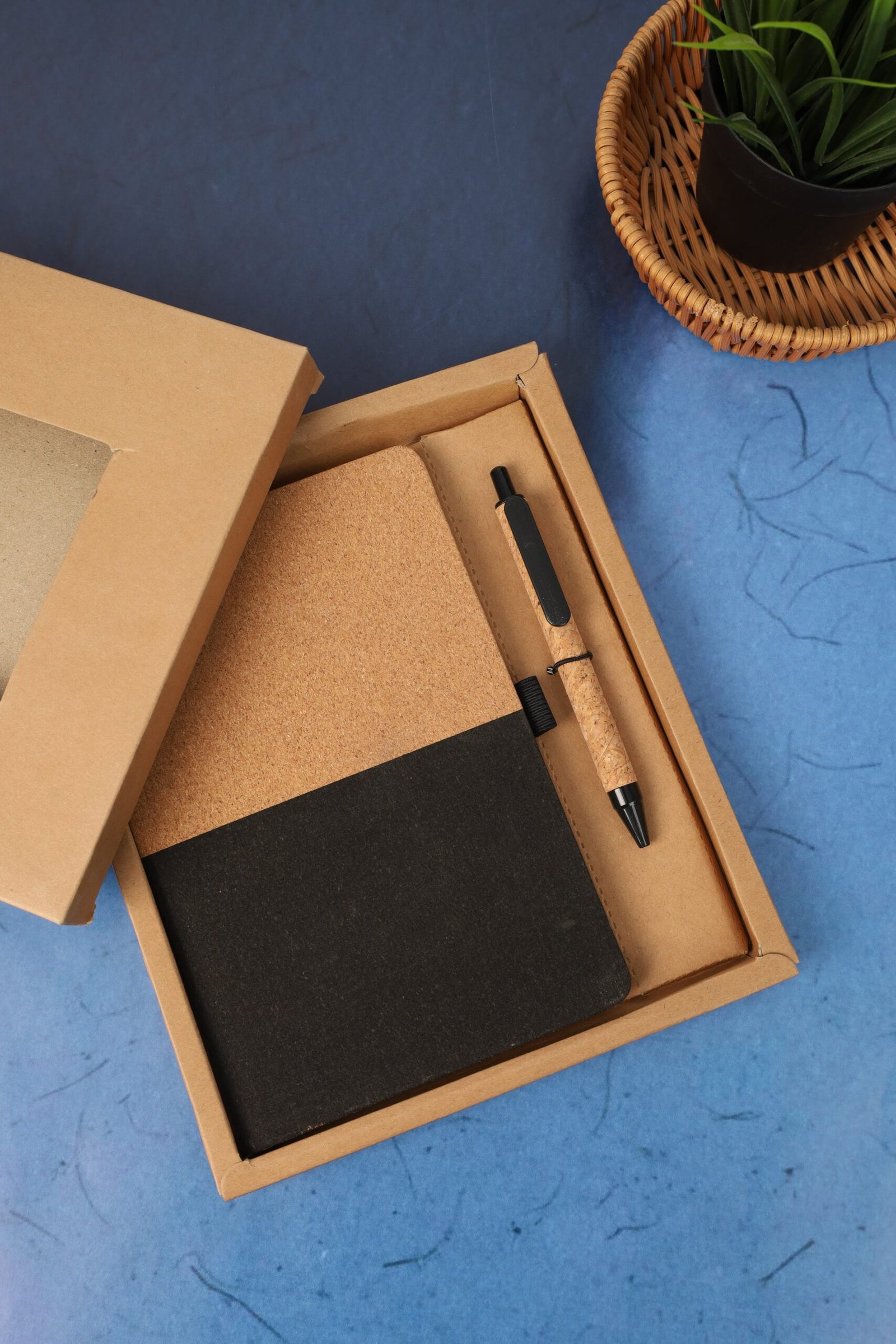 -An A5 cork notebook with 80 70g single-lined sheets, elastic closure and pen loop.