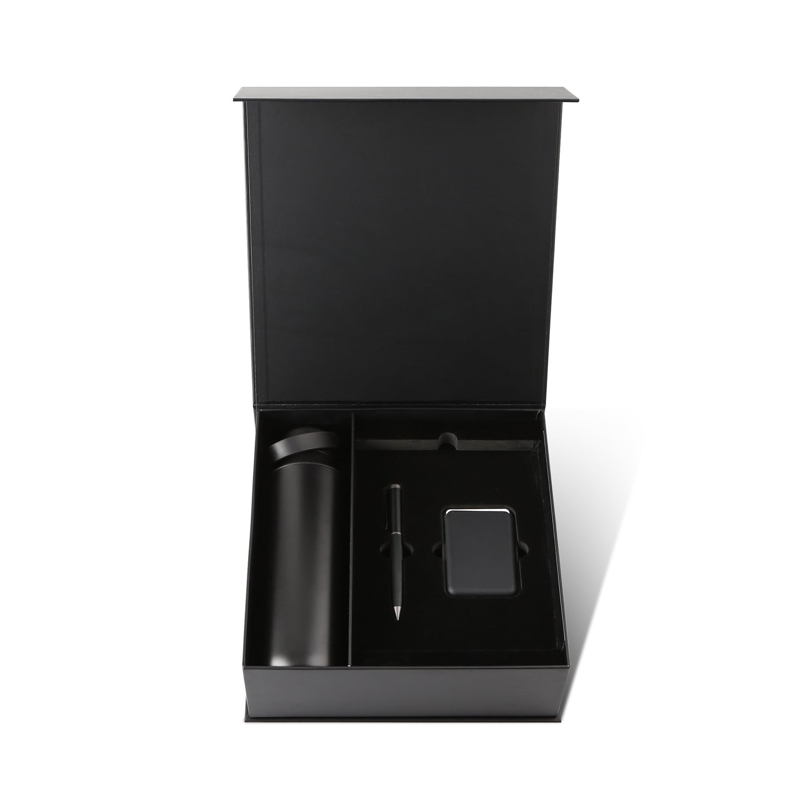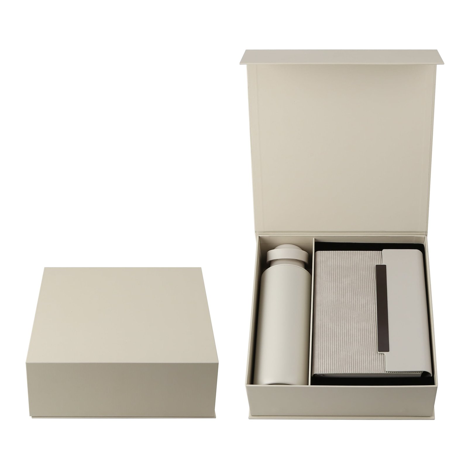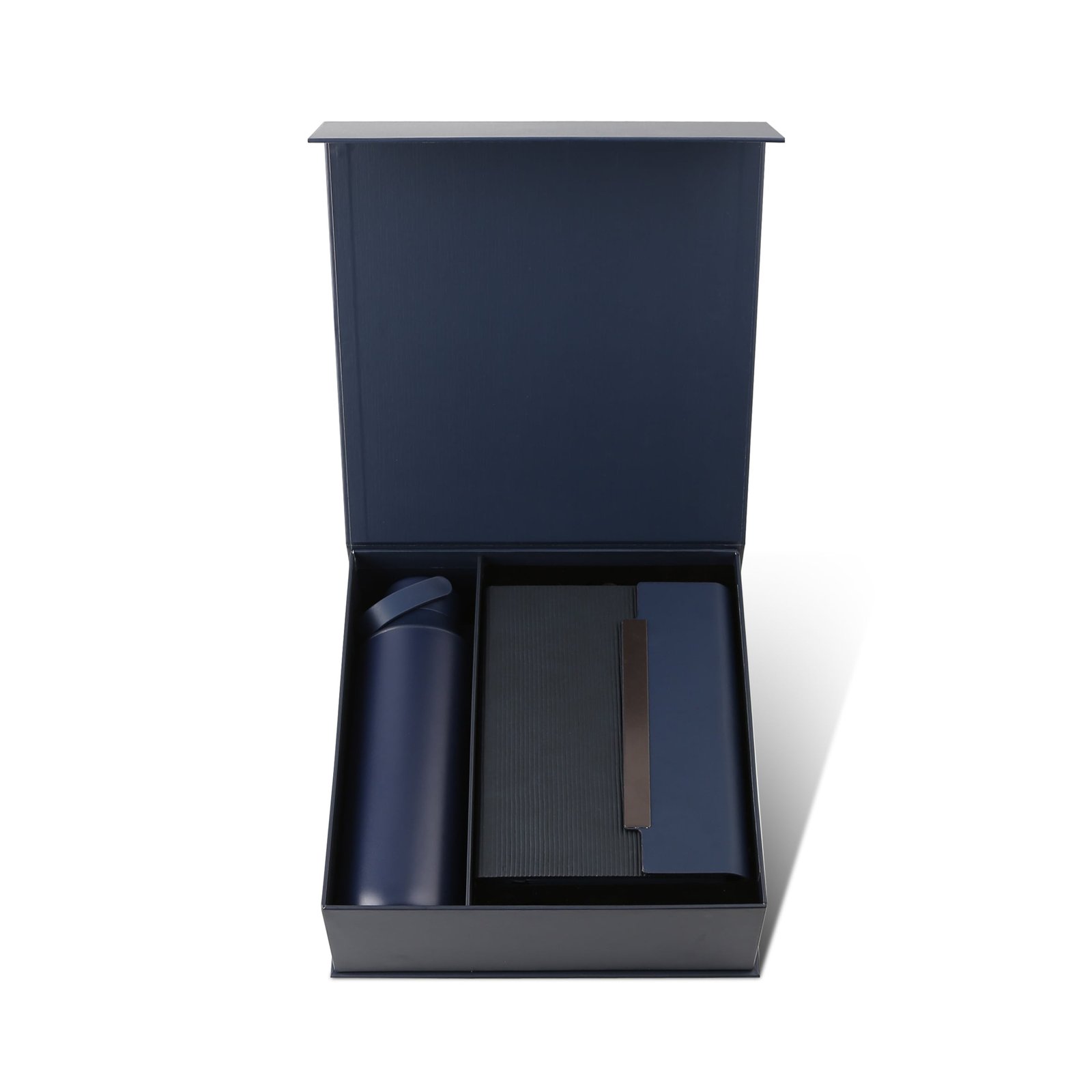A practical and stylish set to welcome new team members. Set Includes 600ml vacuum insulated 304ss bottle, high quality PU binder notebook and metal pen. Product Size: 25.5×26.2×8.6cm. Packaging: Paper Sleeve