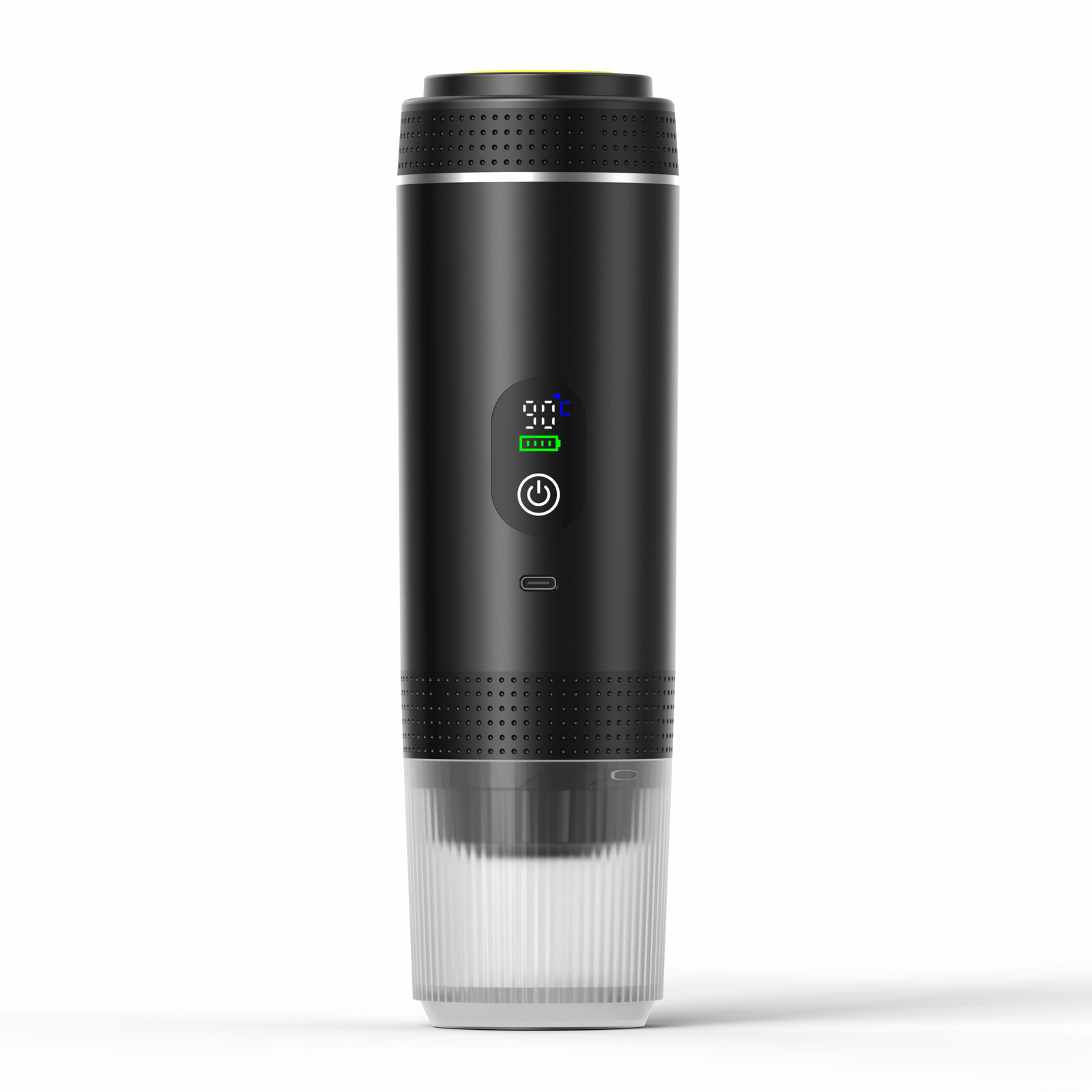 This compact 3-in-1 coffee maker supports ground coffee, small capsules, and large capsules, offering hot and cold brew modes. With a built-in 7500mAh battery, 40 PSI pump, and dual espresso cups included, it’s the perfect companion for travel, work, or outdoor adventures. Set contains 2 80ml espresso packed in a pouch. Product Size: 7.79×7.79×24.55cm Packaging: Paper Box