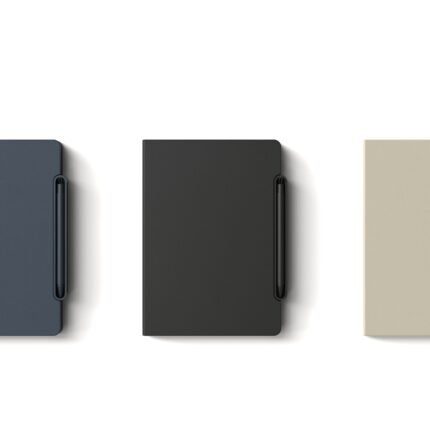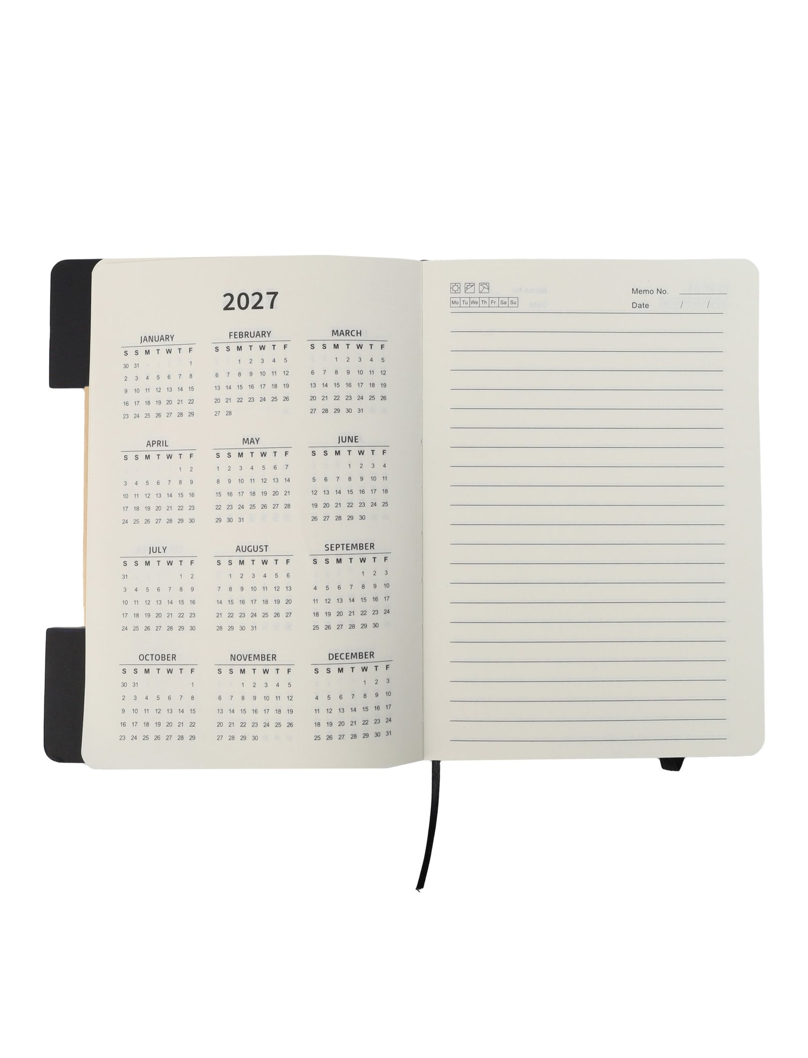 An A5 notebook with felt and bamboo material cover. This notebook features 80 pages along with first information and 4 year calendar pages.