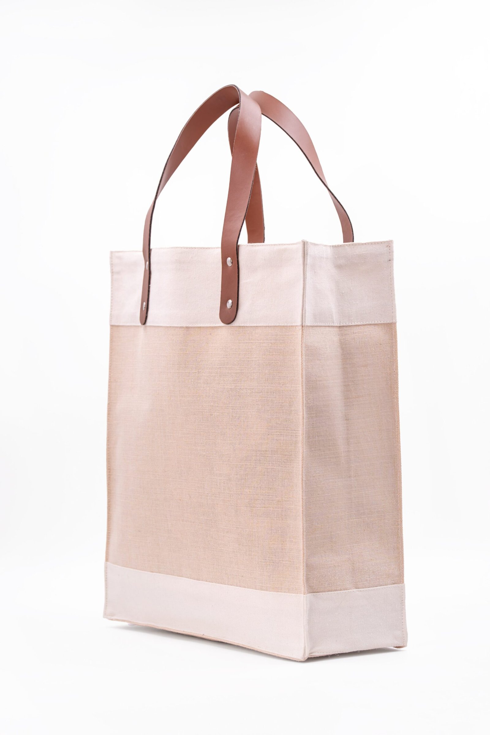 JUCO TOTE – Stylish Laminated Natural Juco Tote Bag with PU Leather Accents