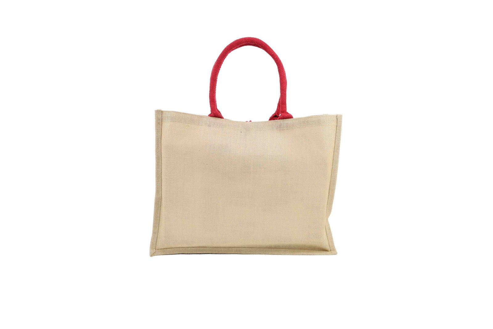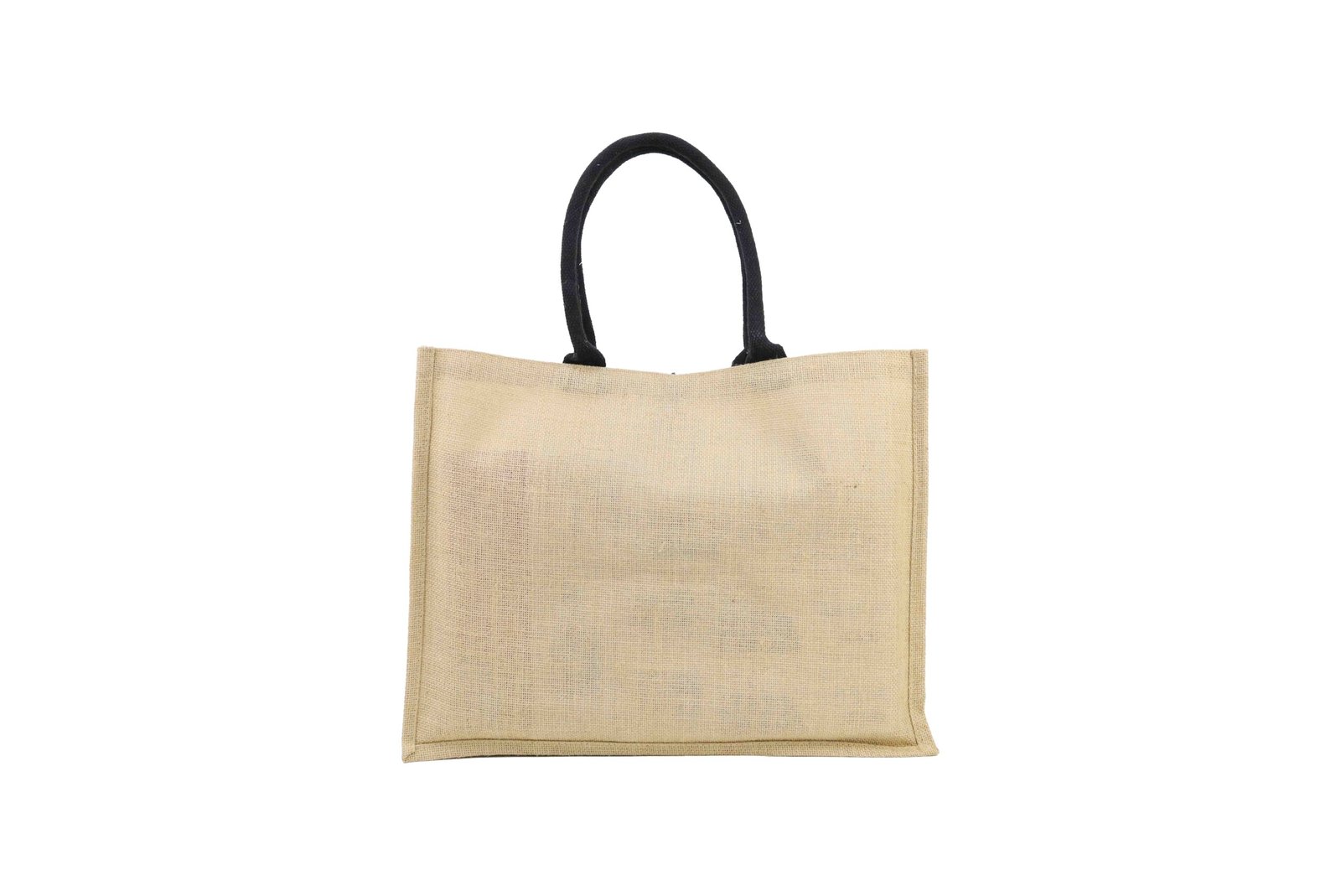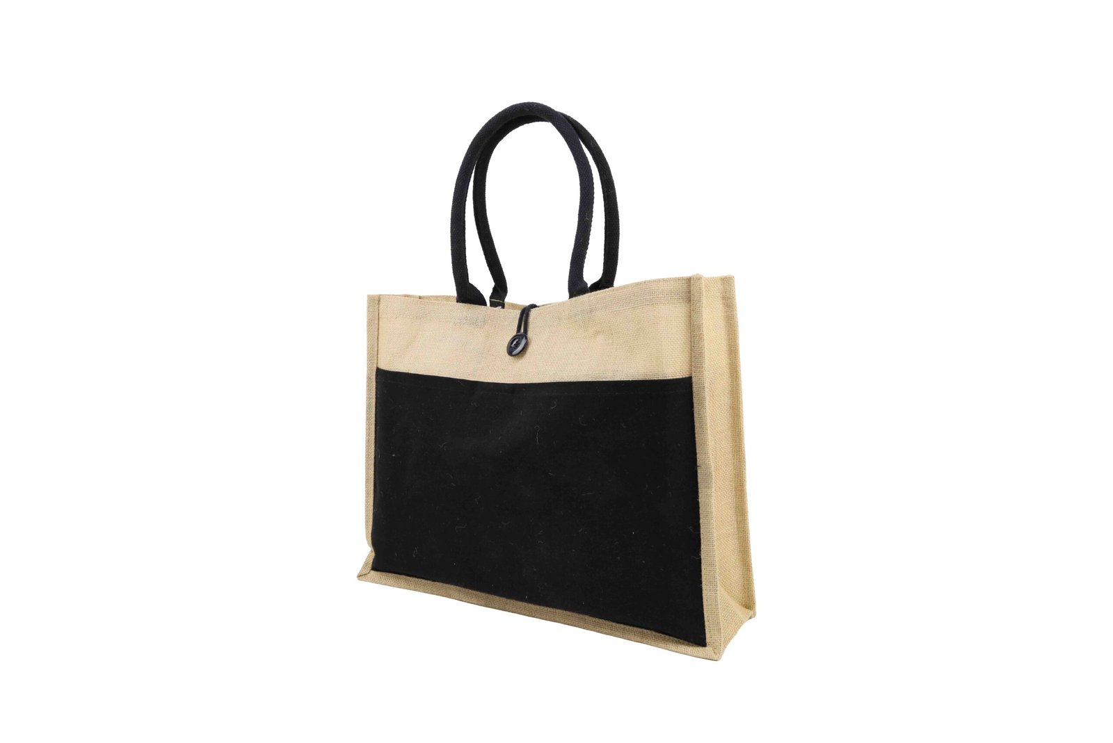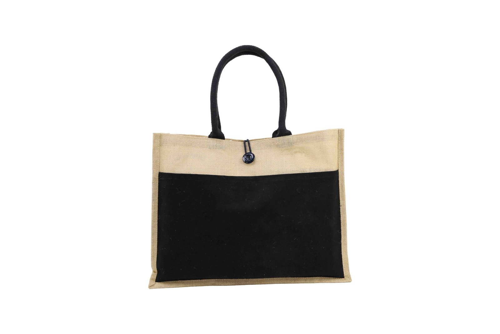 A multi-purpose, eco-friendly jute bag featuring a canvas pocket & cotton webbed handles.