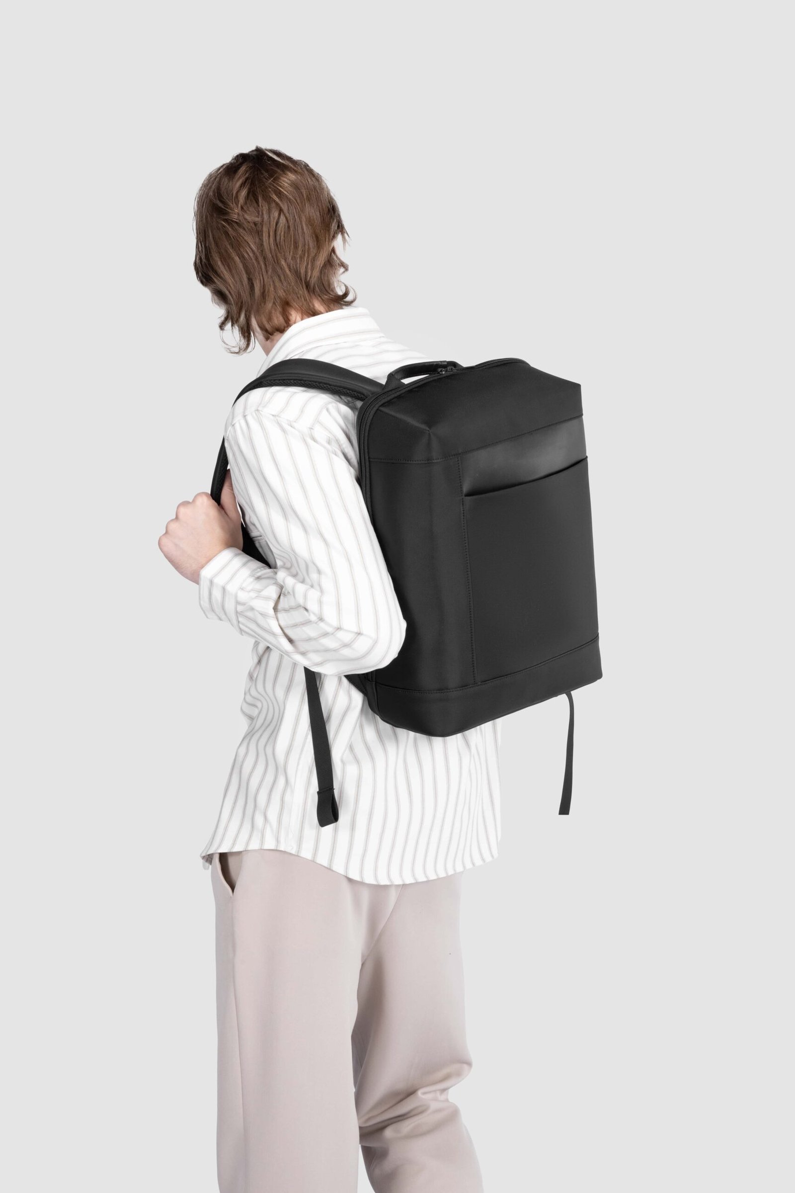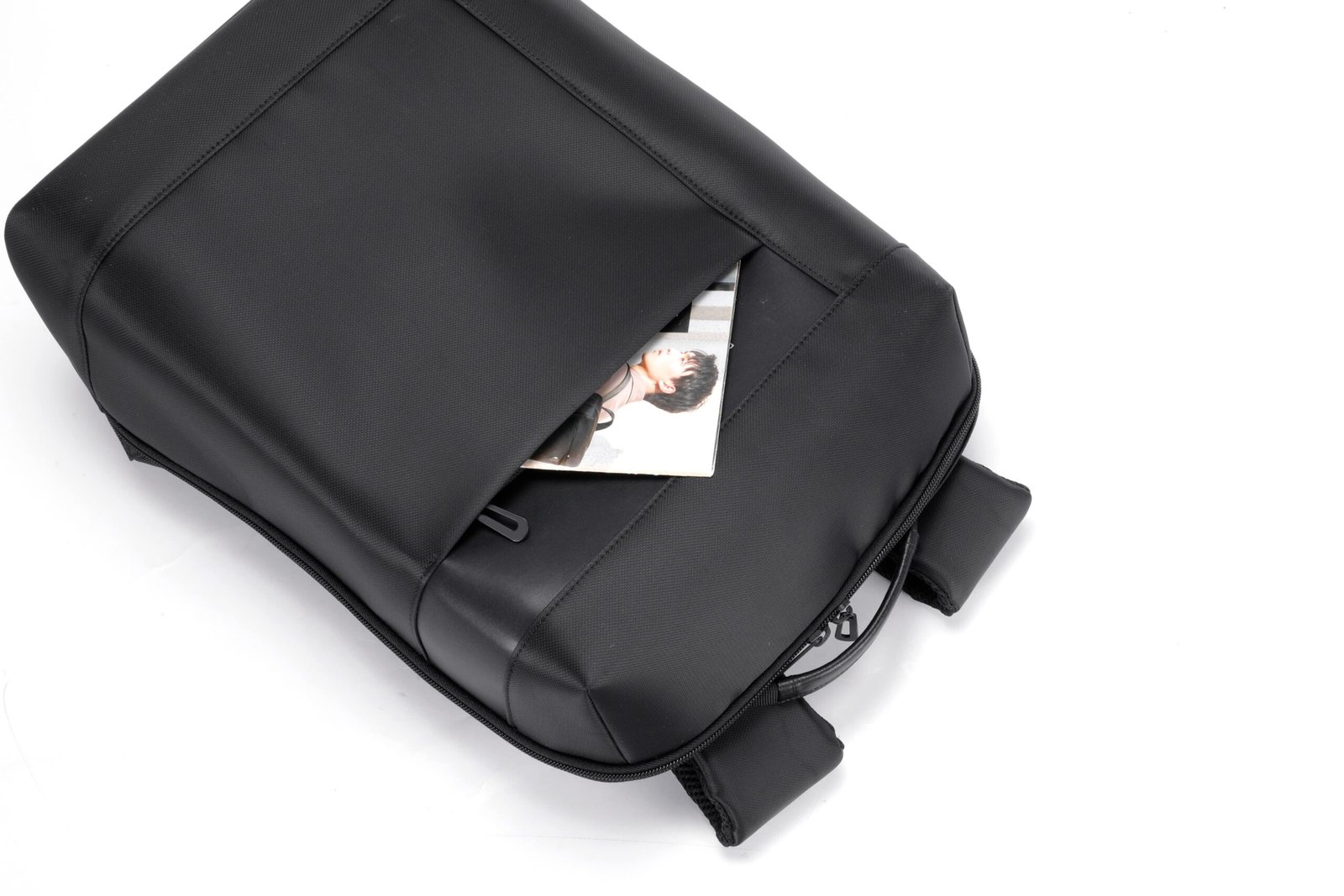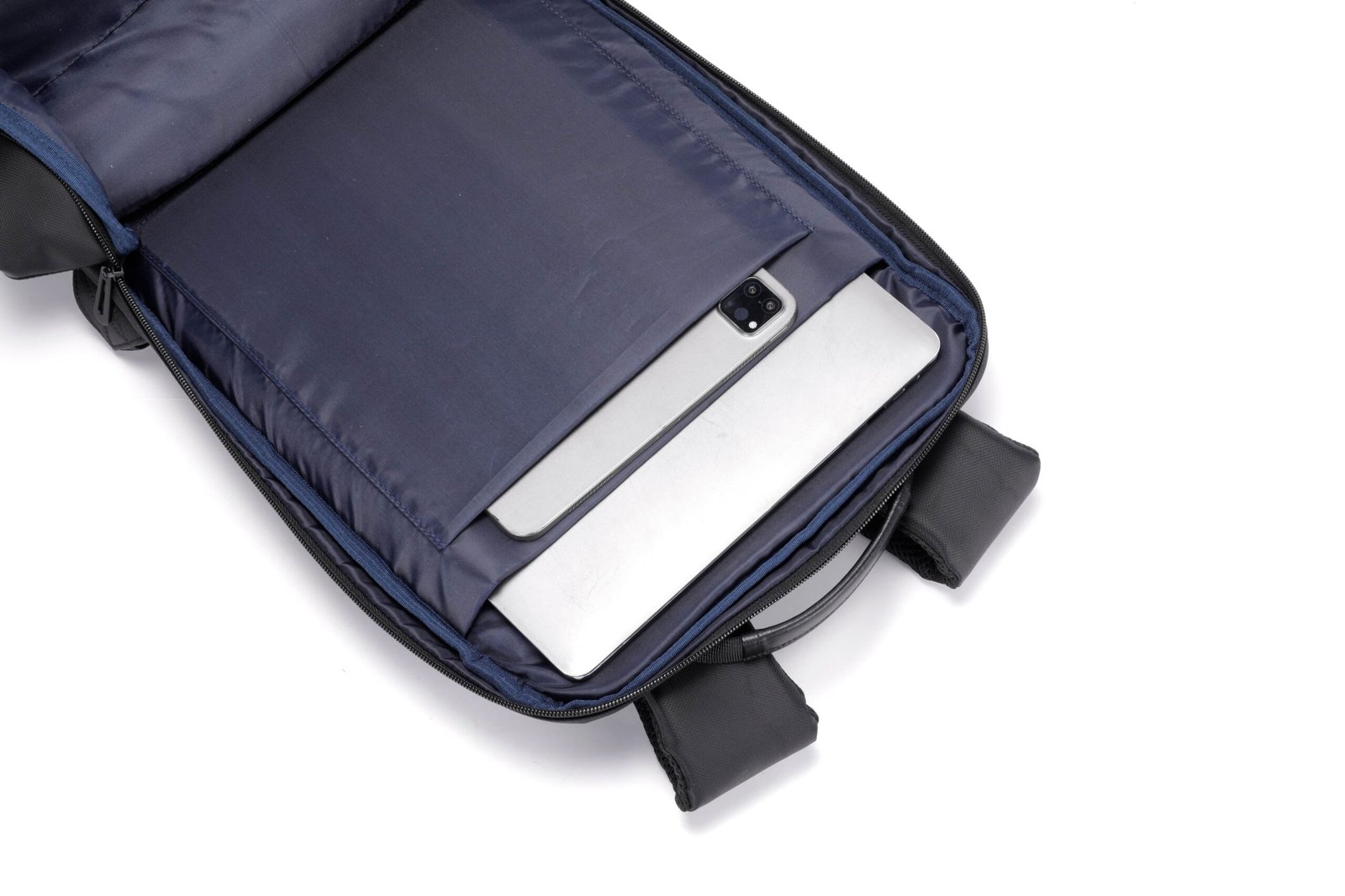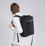 A laptop backpack with 15.6″ laptop compartment made from water-resistant and wear-resistant polyester fabric. It comes with a front quick access zipper pocket and a trolley sleeve on the back.