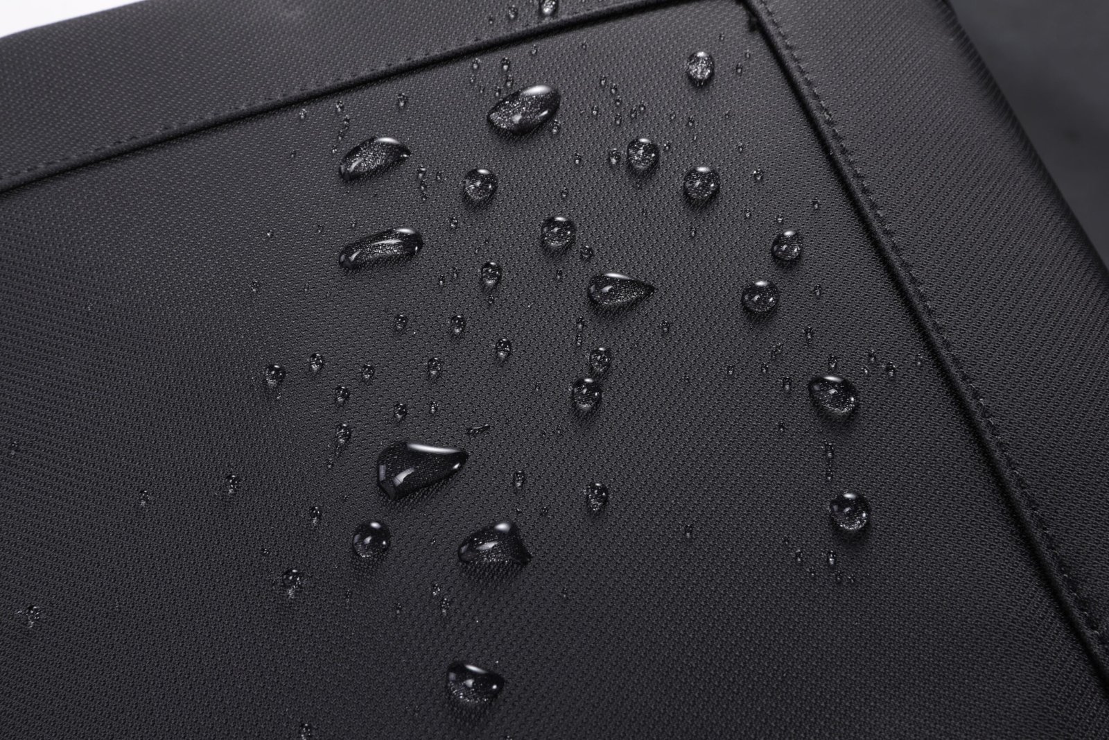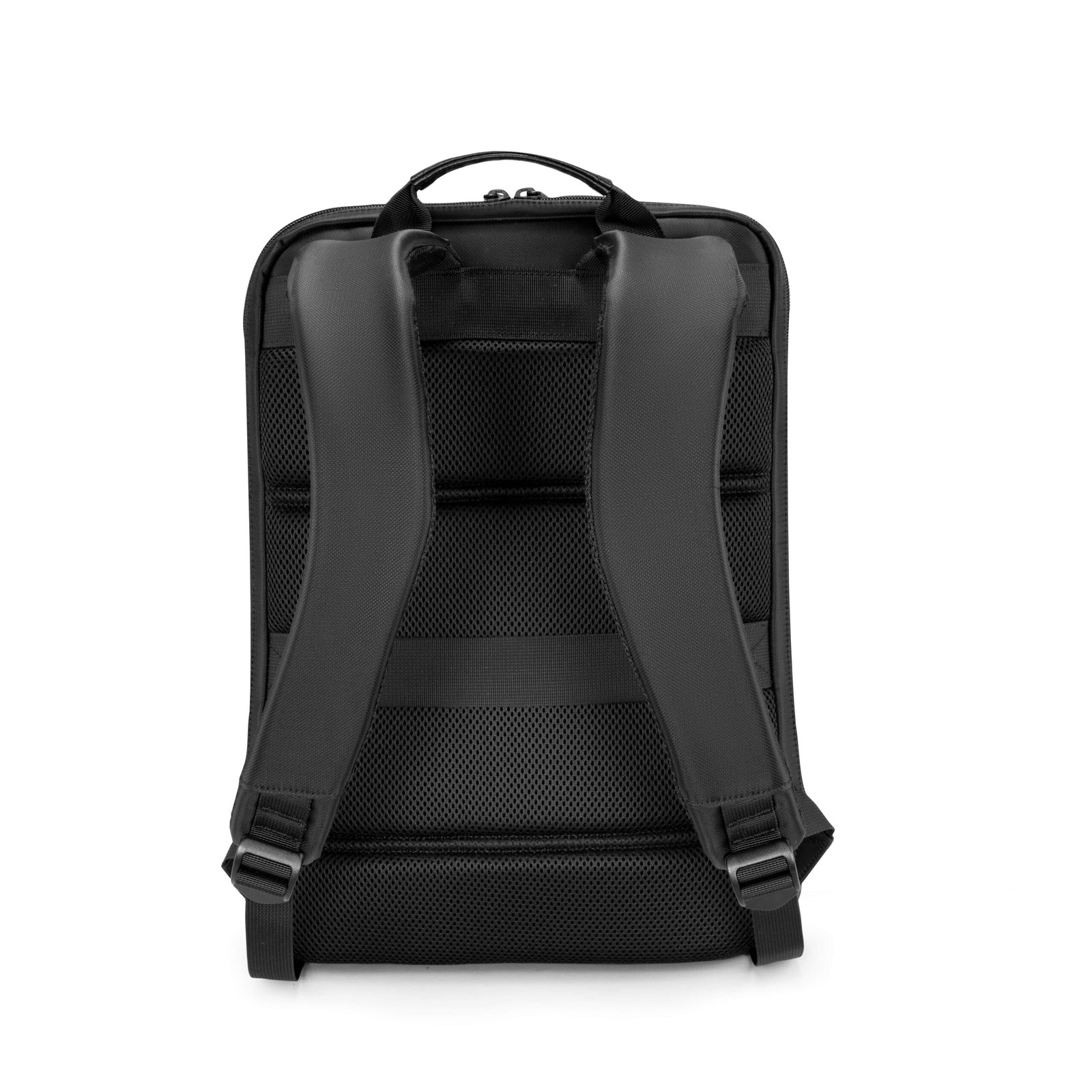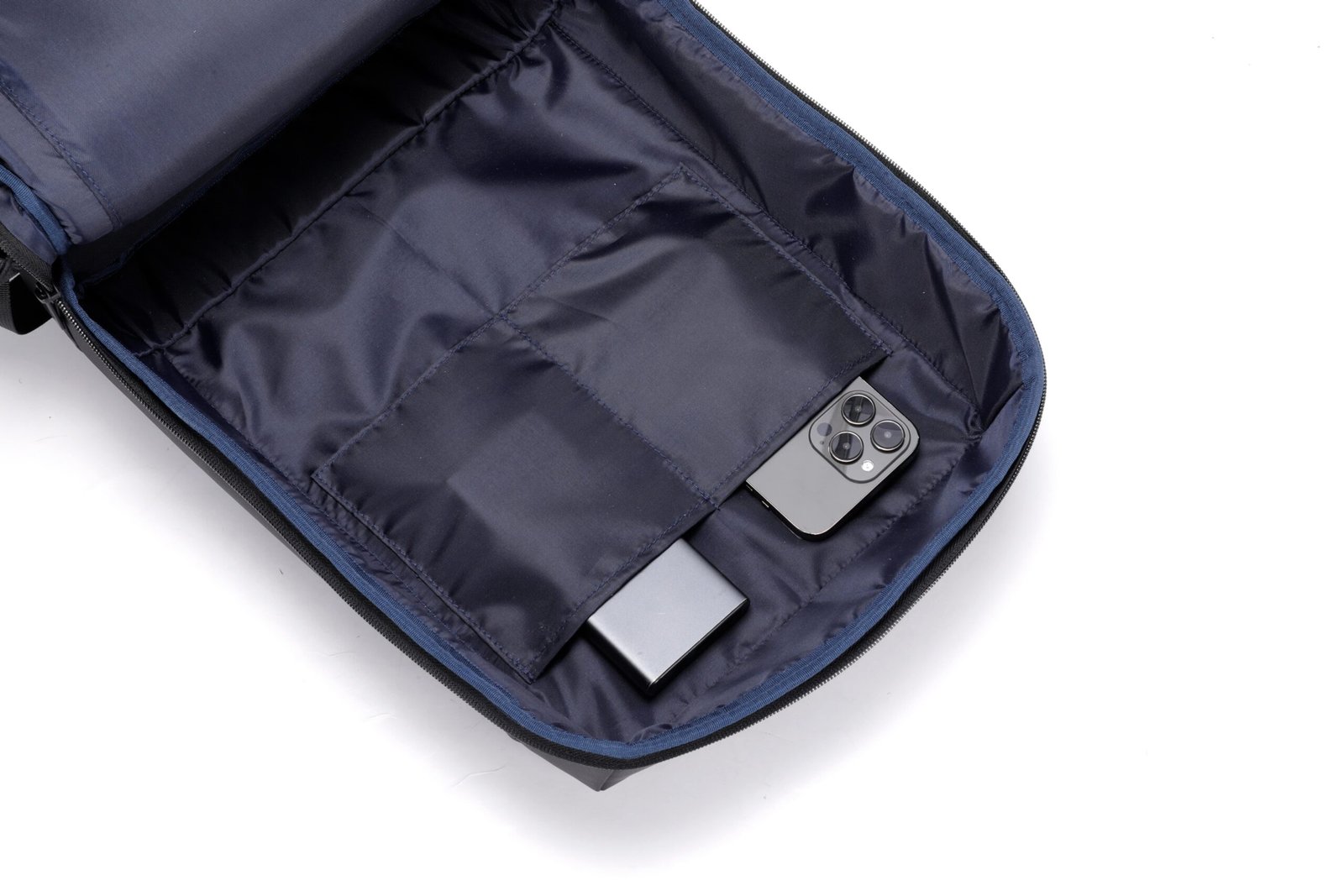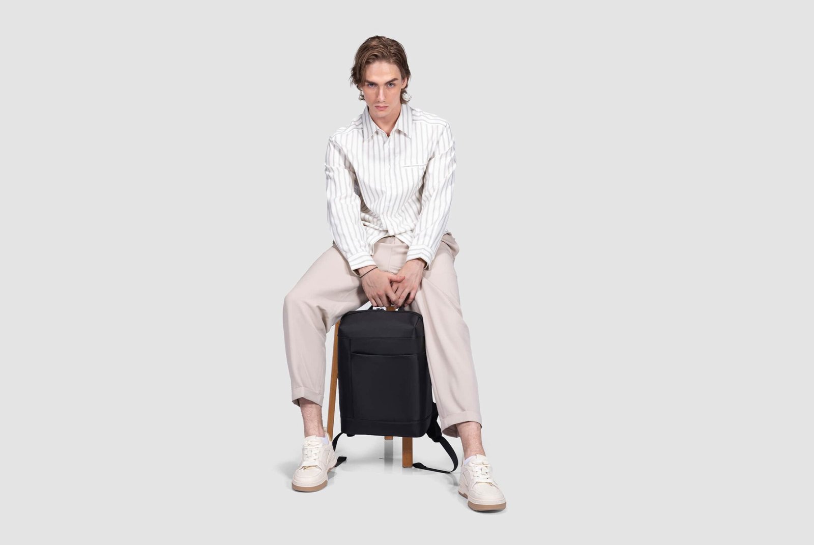 A laptop backpack with 15.6″ laptop compartment made from water-resistant and wear-resistant polyester fabric. It comes with a front quick access zipper pocket and a trolley sleeve on the back.