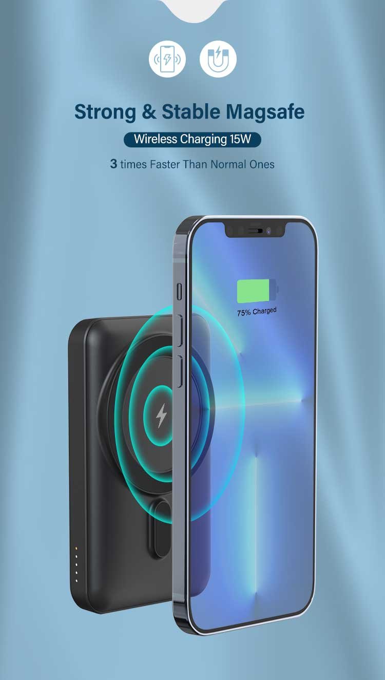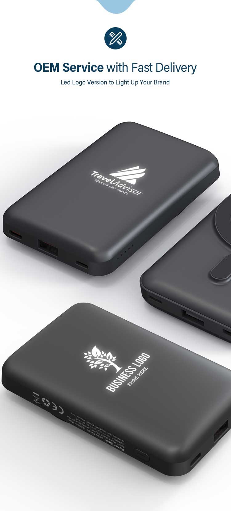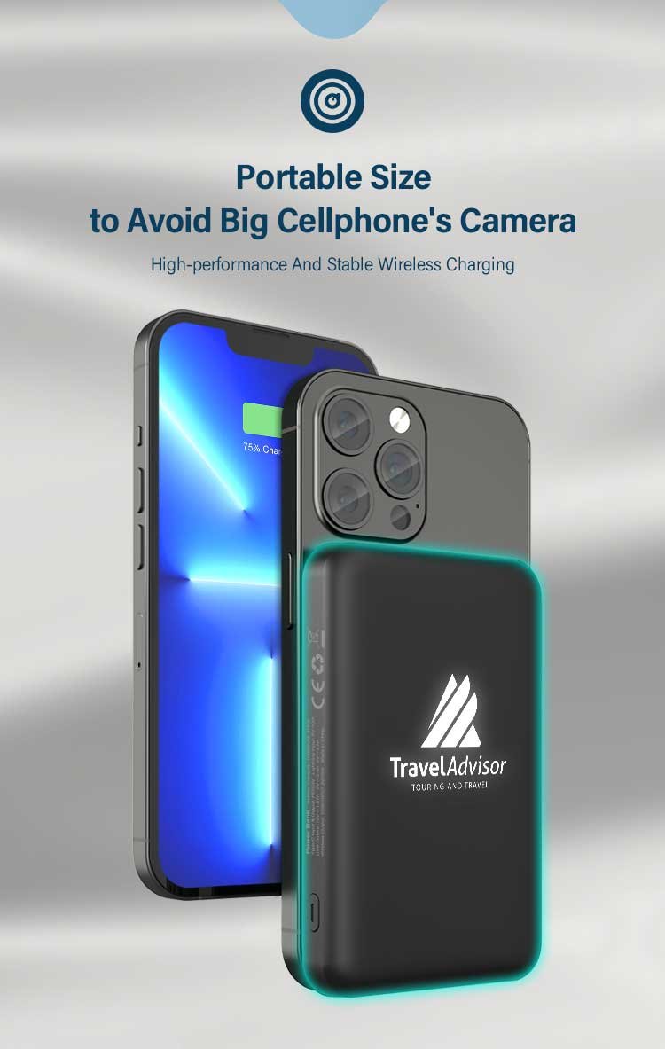 10,000 mAh PD Power Magsafe Powerbank Light-up Logo with 15W wireless charging and 22.5W quick charge in ABS rubberized finishing. Product Size: 10.9×69.x1.9cm. Packaging: Paper Box