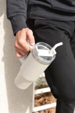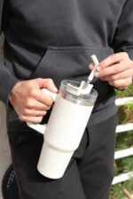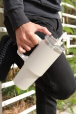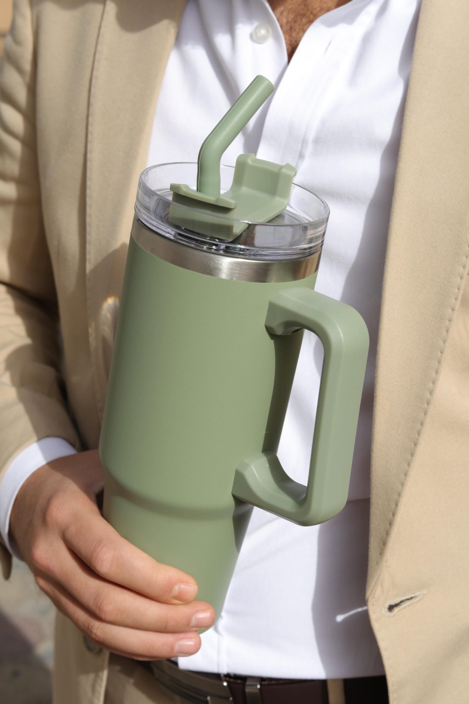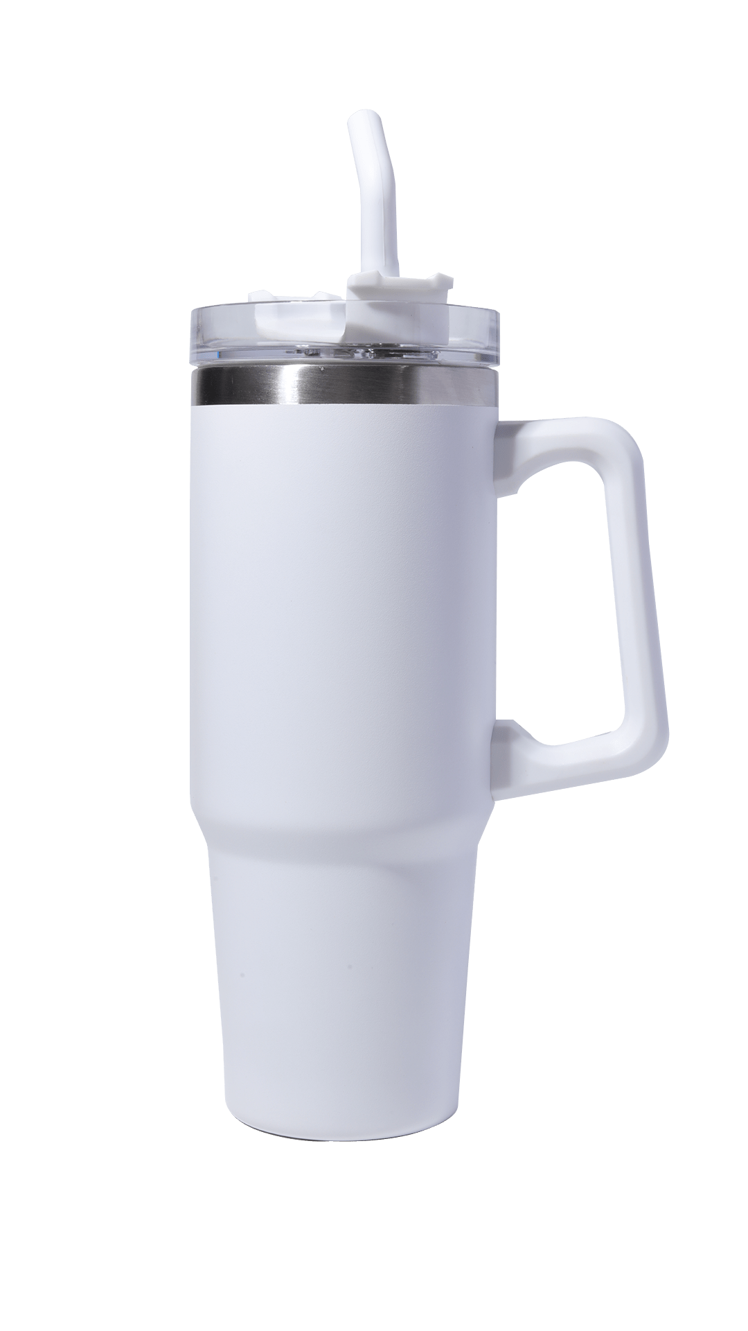 Stylish 900ml mug with handle and handy double wall mug with 304SS inside and Has vacuum. Has Powder coating creating nice colors and SS straw with silicone cover and cleaning kit. Product Size: 23.3X8.5CM. Packaging: Paper Box