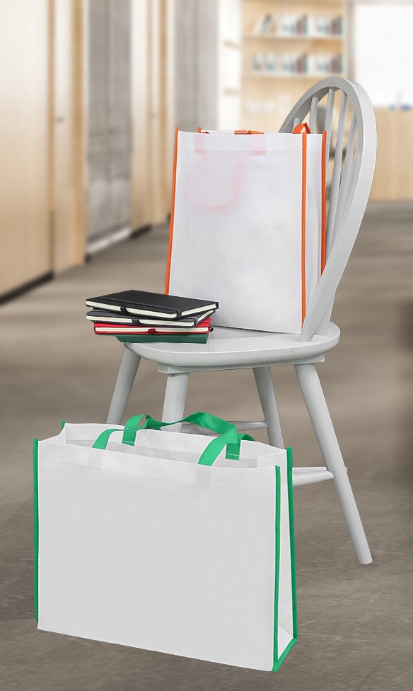 100 GSM horizontal bags made from nonwoven material that is long lasting and durable.