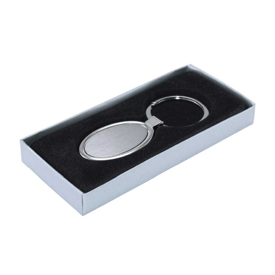 Metal keychain made of incredibly durable metal. Oval Keychain with a Shiny chrome finish.