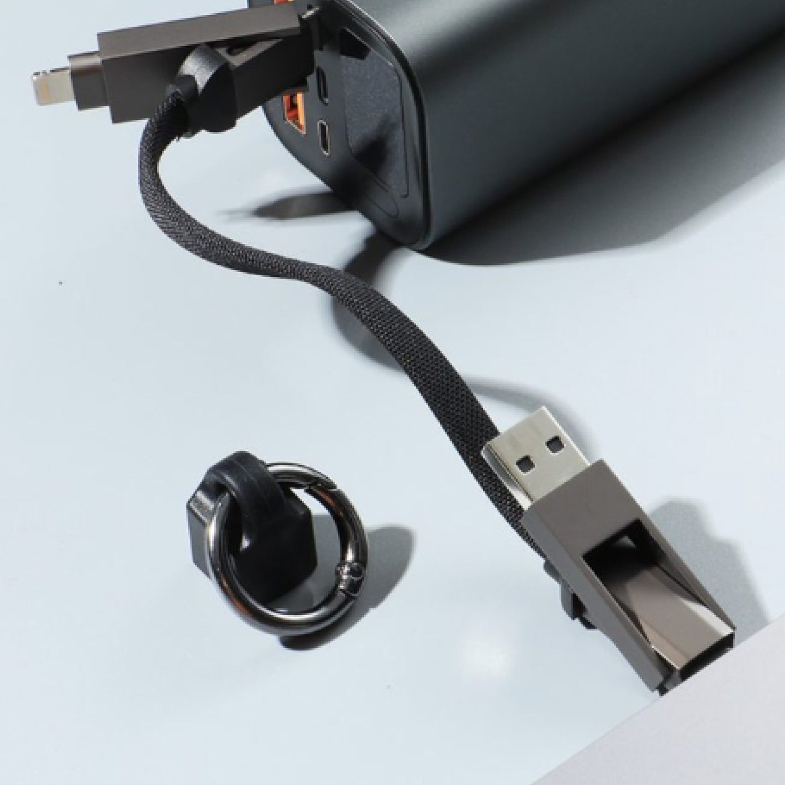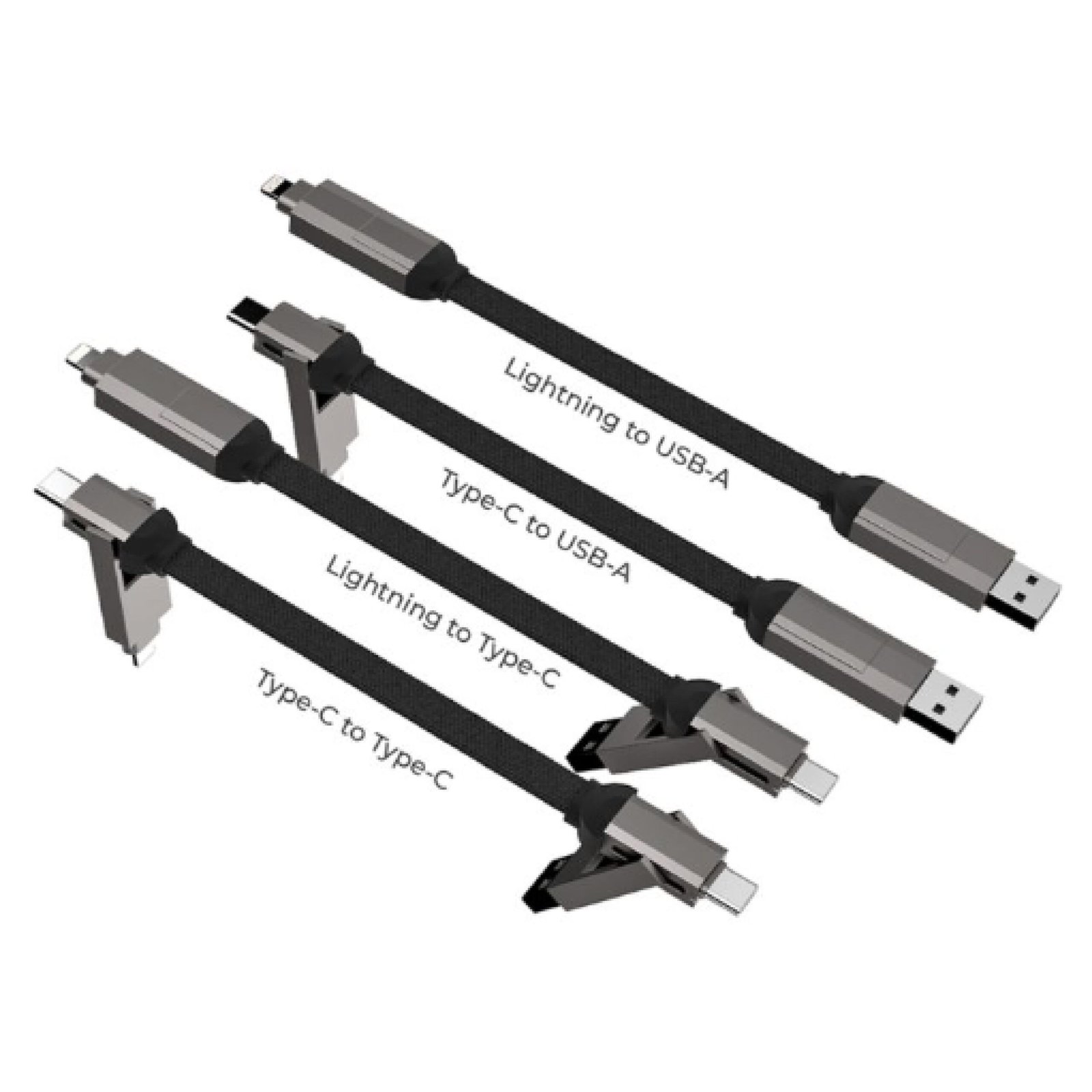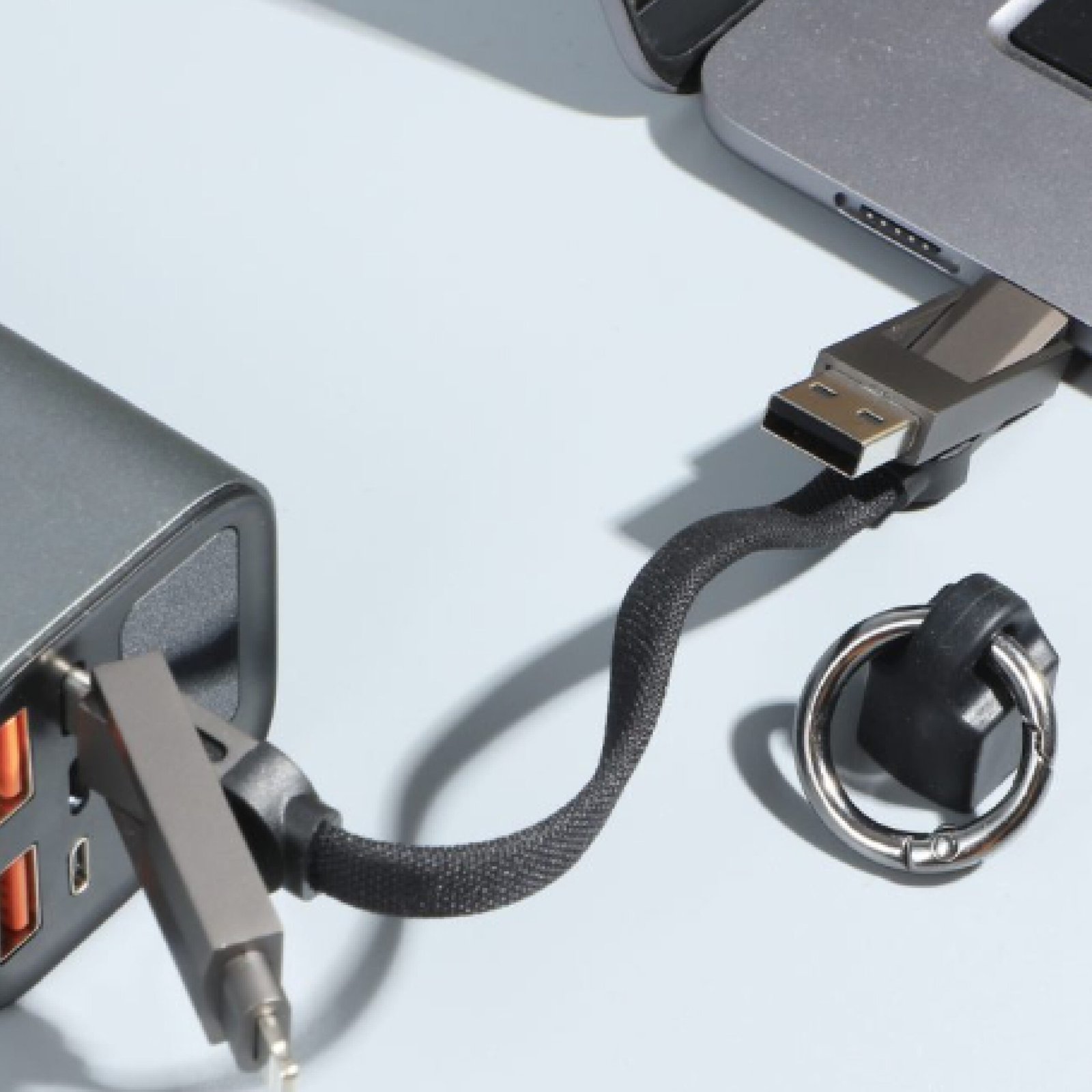 High quality multi-cable in zinc alloy material that can be used as charging cable and data transfer cable for mobiles and laptop with Type-C input and output. Transfer Rate: USB2.0; 480mbps. Working voltage: 5V~20V.