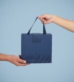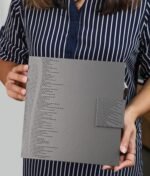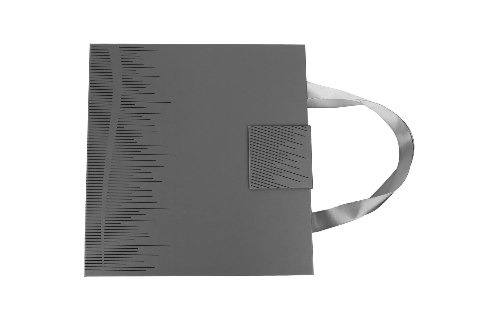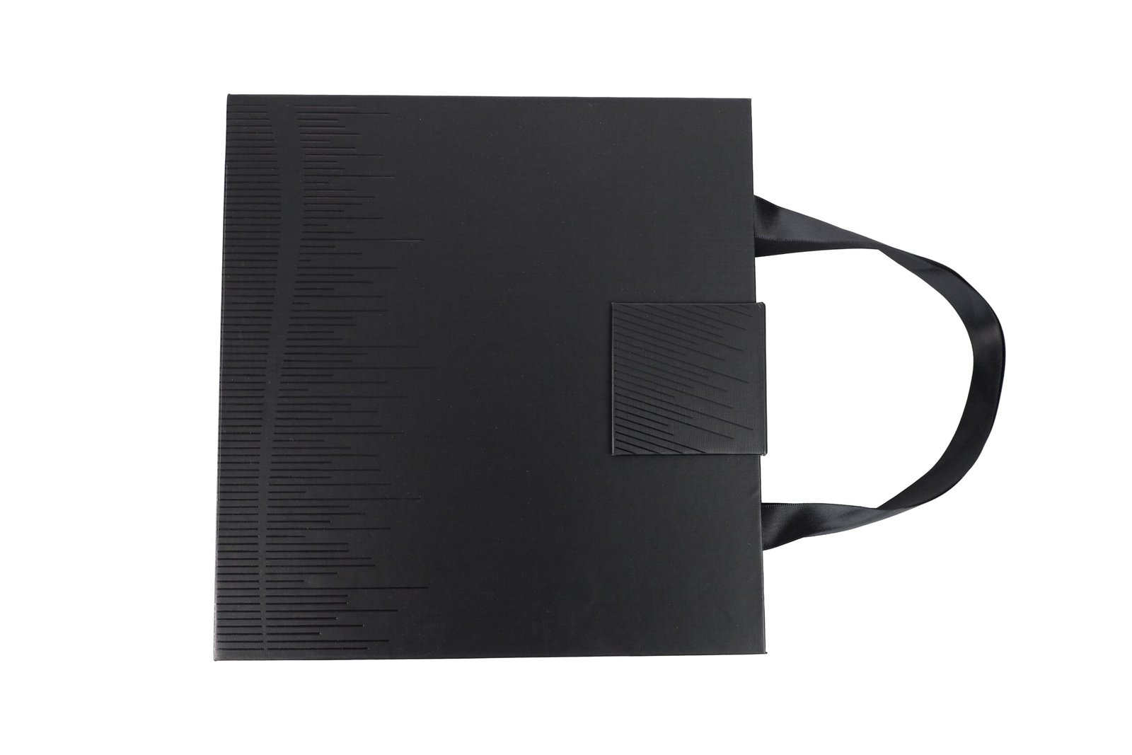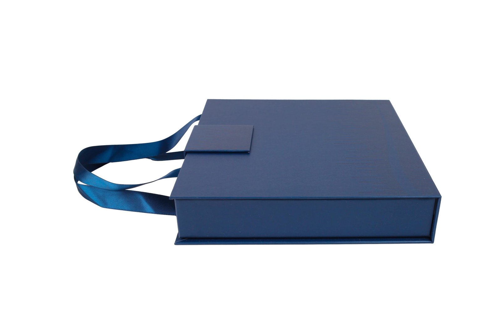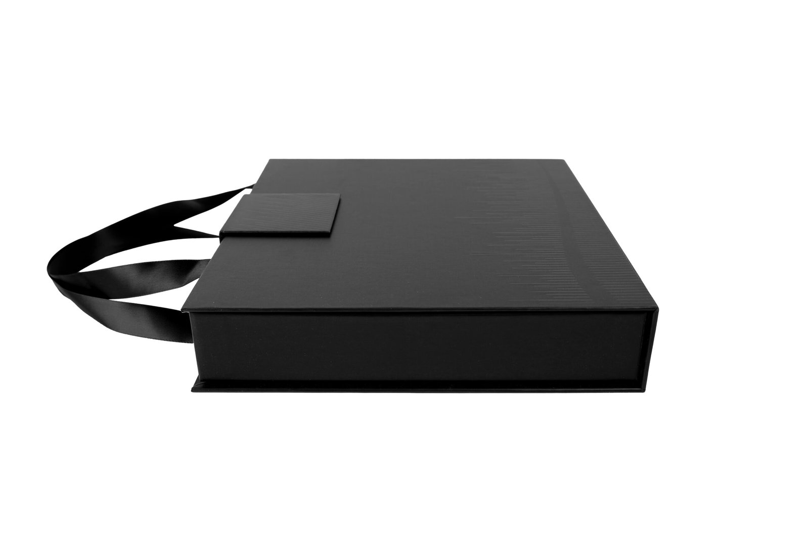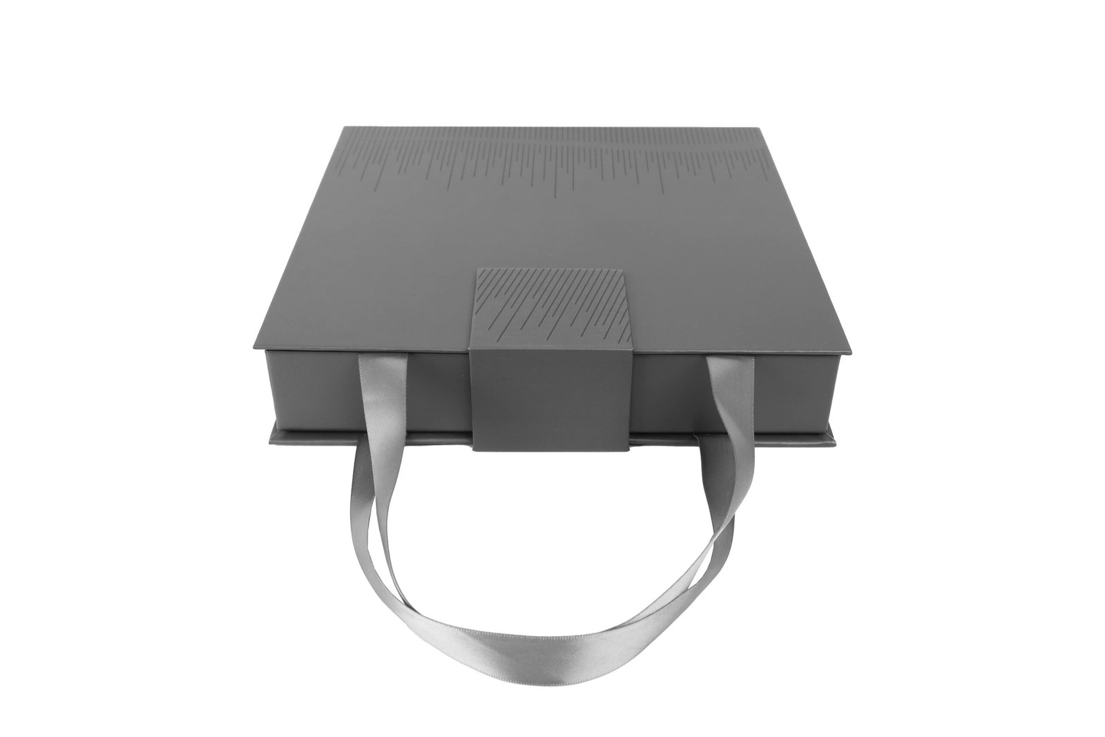 A large corporate gift box made from a kappa board with a 2.5 mm thickness, it features a magnetic closing and a handle. The gift box consists of a notebook that has 80 sheets of 100 GSM paper and a metal pen matching the colour of the box.
