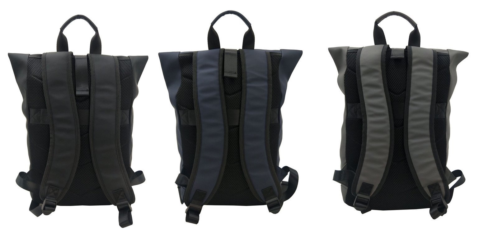 ROLLTOP BAG, Trendy design Backpack with padded laptop pocket which can fit 15.6″ laptop nd shoulder strap in a water resistant material. Product Size: 42x26x12.5CM. Packaging: Polybag