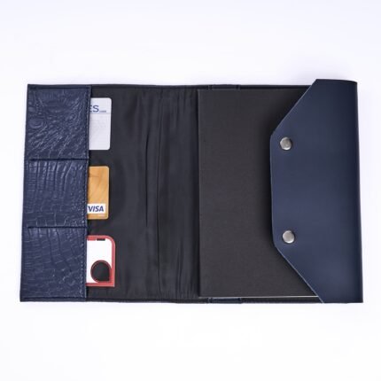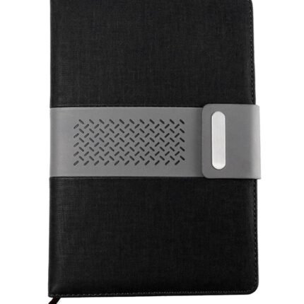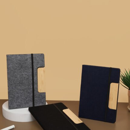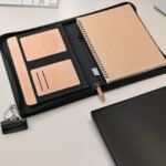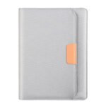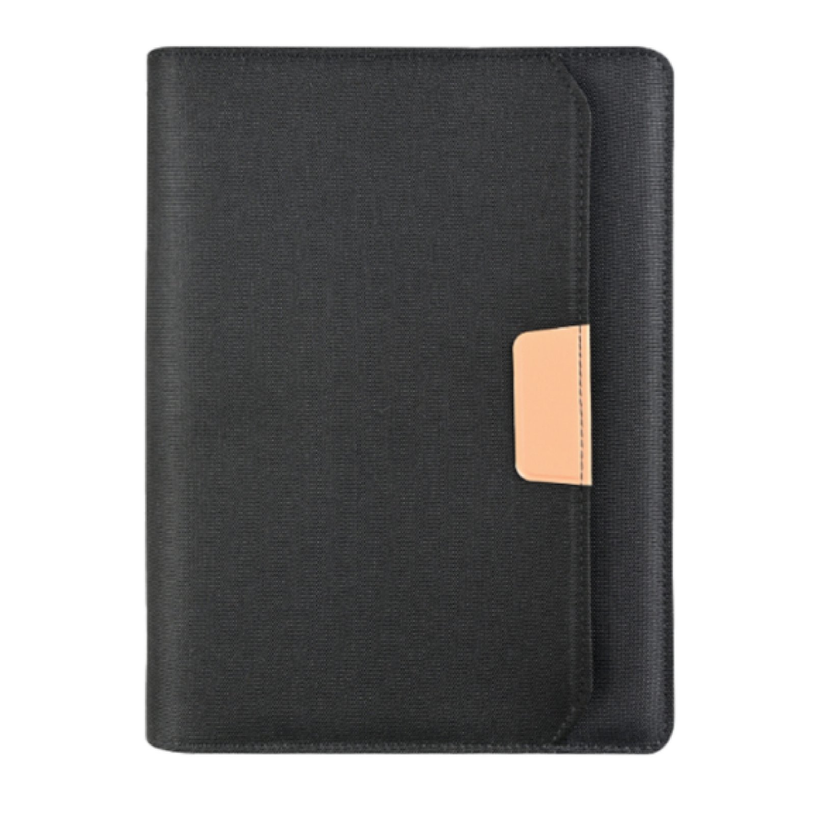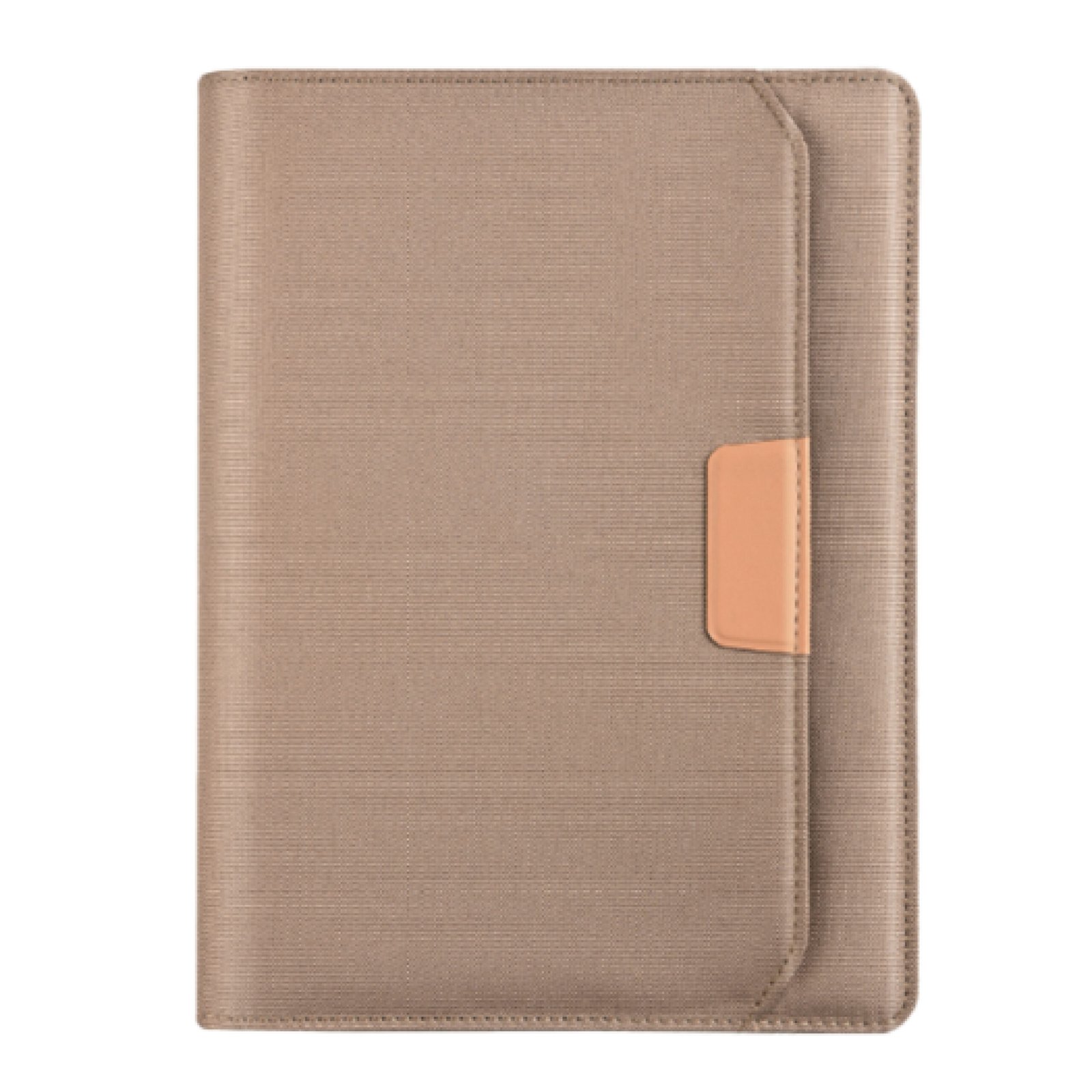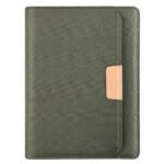 RPET Material B5 portfolio with 100 sheets lined beige sheets in kraft spiral notebook, pocket in the cover and inside has document organizer, card holder, and pen holder with zipper closure. Product Size: 26.5×20.8×1.9cm.