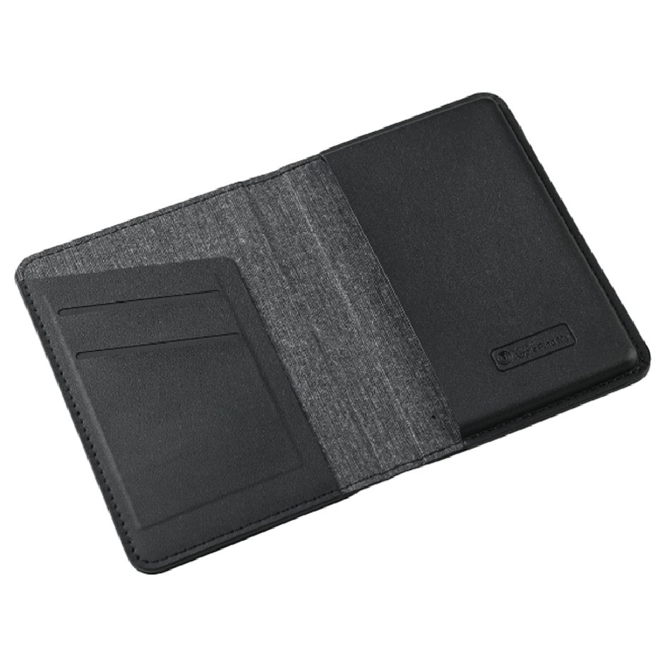 A premium passport holder designed specifically for frequent travelers. This innovative passport holder features a built-in tracker that seamlessly connects to the Apple Find My app, ensuring you never lose your passport again. With its compact size of 14 x 10 x 1.4 cm