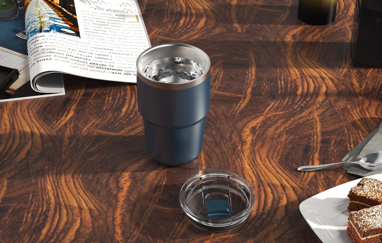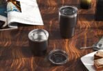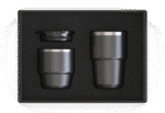 Recycled Stainless Steel Coffee cup Set in 180ml and 240ml capacities perfect in all of your drinking moods. 304 SS inside and 201 SS outside. With one Lid that fits both mugs. Packaging: Black Kraft Box