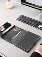 A5 magnetic flap closure notebook with 32gb USB in recycled PU material. Simple and clean design with 80 sheets removable notebook. Product Size: 15.5×22.1×1.8cm. Packaging: Kraft Paper Box